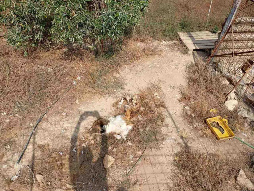 Τουρίστας από την Αντίσαμο Κεφαλονιάς βρήκε το μεσημέρι σήμερα (Παρασκευή 22/08/2025) ένα σκυλάκι φαγωμένο και ένα δεύτερο σκύλο σε άθλιες συνθήκες!!! Μάλλον το πρώτο σκυλάκι φαγώθηκε από το δεύτερο σκυλάκι από την πείνα του, σύμφωνα με τα λεγόμενα του τουρίστα.