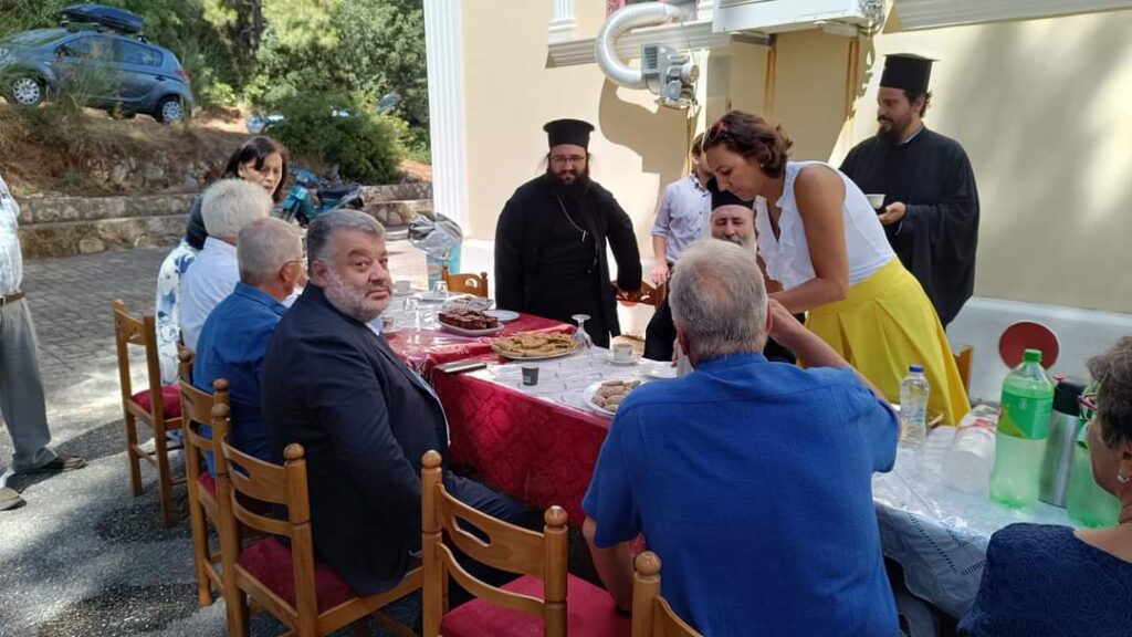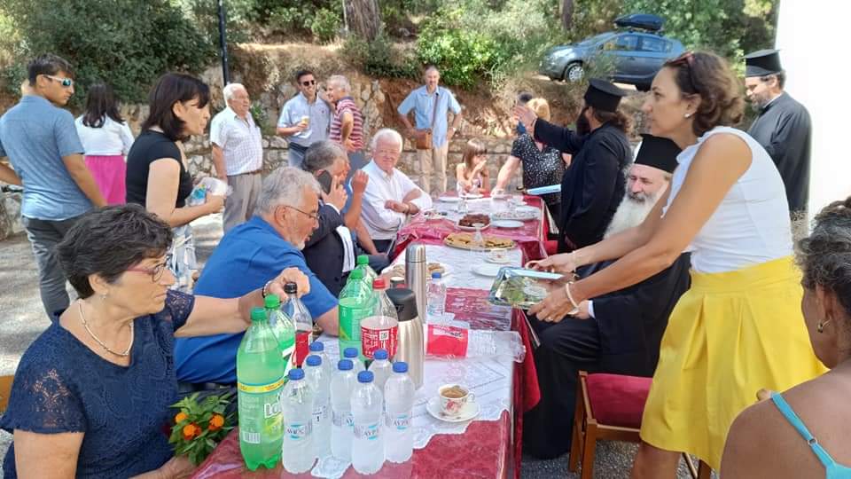 Αργότερα, οι πιστοί γεύτηκαν μοναδικές λιχουδιές προσφοράς των μελών της Εκκλησίας και στο τέλος κάθισαν σε τραπέζι έξω από την Ιερό Ναό ο Σεβασμιώτατος Μητροπολίτης Κεφαλληνίας Δήμητριος, οι Ιερείς, οι πολιτικοί αρχηγοί και εκκλησιαζόμενοι και συζήτησαν μεταξύ ανταλλαγή ευχών και τρέχοντα εκκλησιαστικά θέματα!