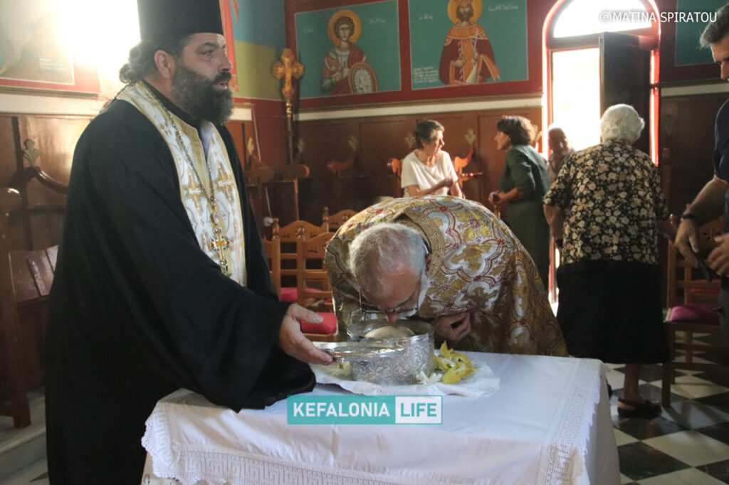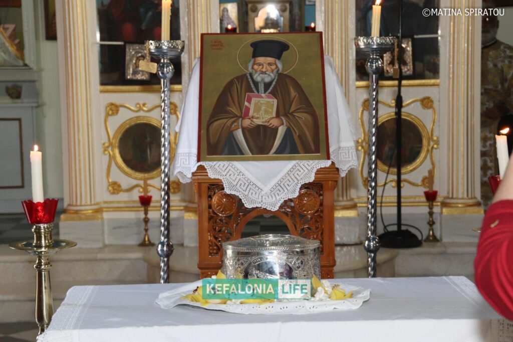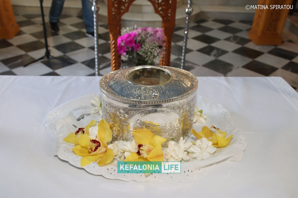 Η μεταφορά έγινε από το αυτοκίνητο της Ιεράς Μητρόπολης Κεφαλληνίας με τη συνοδεία περιπολικού της Ελληνικής Αστυνομίας. Ο παπάς Χαράλαμπος Μαρκέτος και ο παπάς Νικόλας Σωτήρας μετέφεραν διαδοχικά την Αγία Κάρα εντός του Ναού. Εκεί έγινε και Παράκληση του Αγίου.
