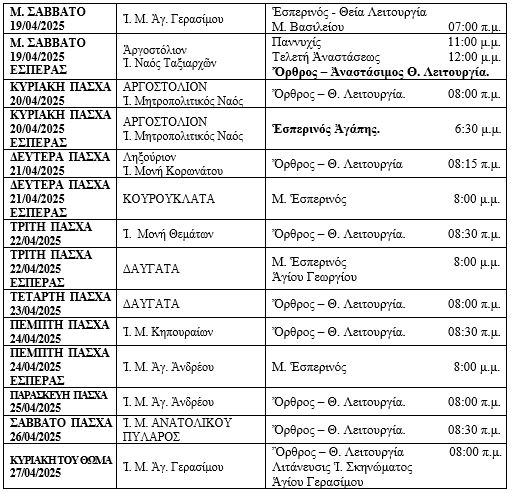 ΠΡΟΓΡΑΜΜΑ ΣΕΒ. ΜΗΤΡΟΠΟΛΙΤΟΥ KEΦΑΛΛΗΝΙΑΣ κ. ΔΗΜΗΤΡΙΟΥ