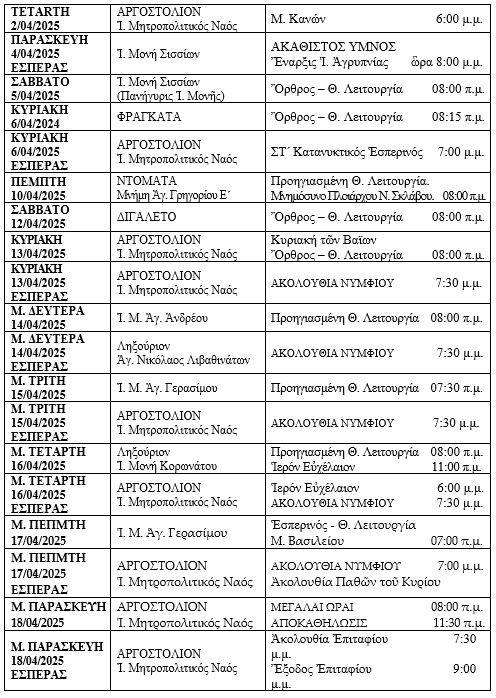 ΜΗΝΟΣ ΑΠΡΙΛΙΟΥ, Μ. ΕΒΔΟΜΑΔΟΣ & ΔΙΑΚΑΙΝΗΣΙΜΟΥ ΕΤΟΥΣ 2025