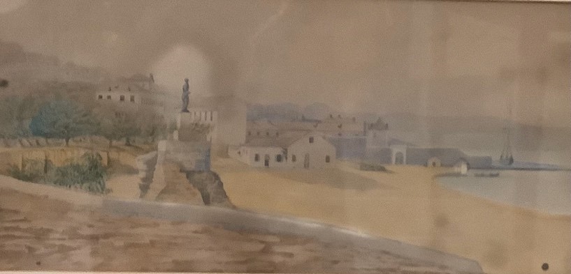 Εικ. 3: Άγνωστος καλλιτέχνης, Άποψη της πλατείας Maitland στο Αργοστόλι, μέσα 19ου αι., 18×38 εκ., Κοργιαλένειο Ιστορικό και Λαογραφικό Μουσείο