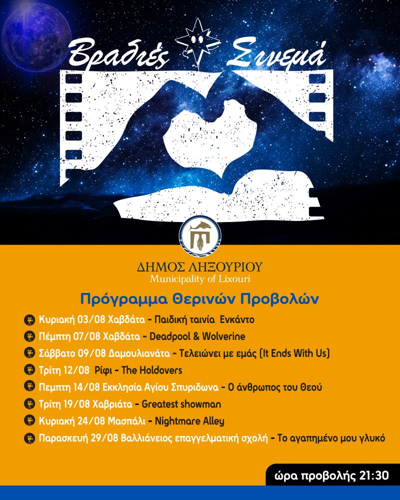 Με χαρά, σας παρουσιάζουμε το πρόγραμμα θερινών κινηματογραφικών προβολών για τον Αύγουστο!