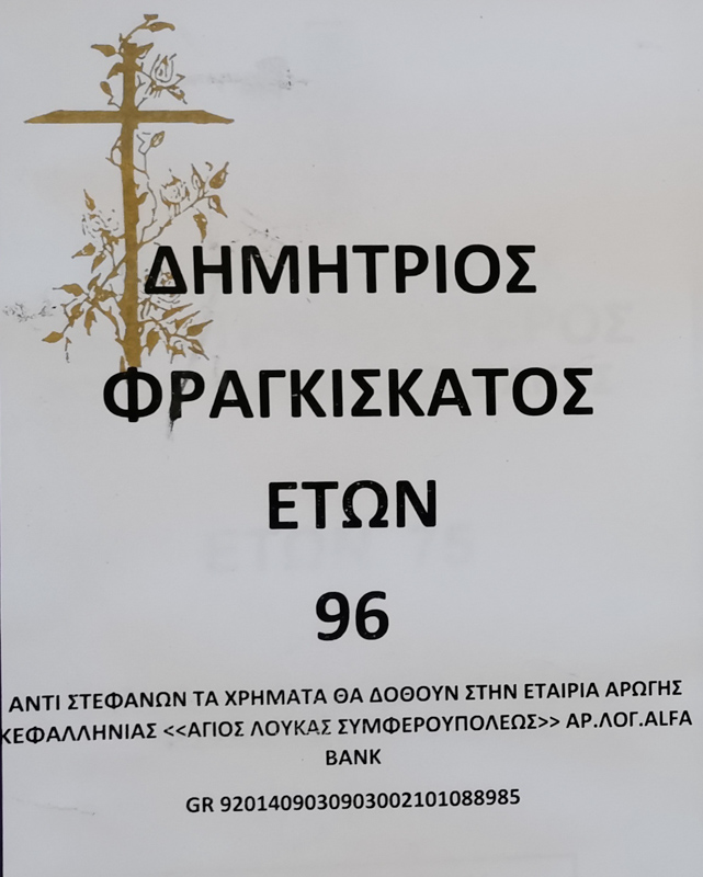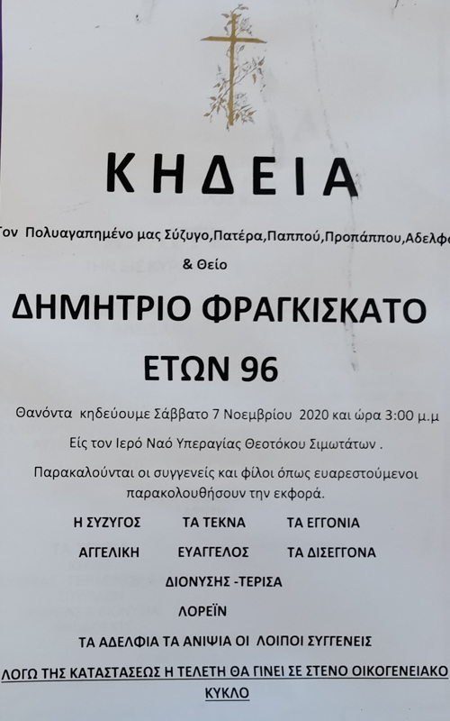 Κηδεία: Δημήτριος Φραγκισκάτος (Ετών 96)