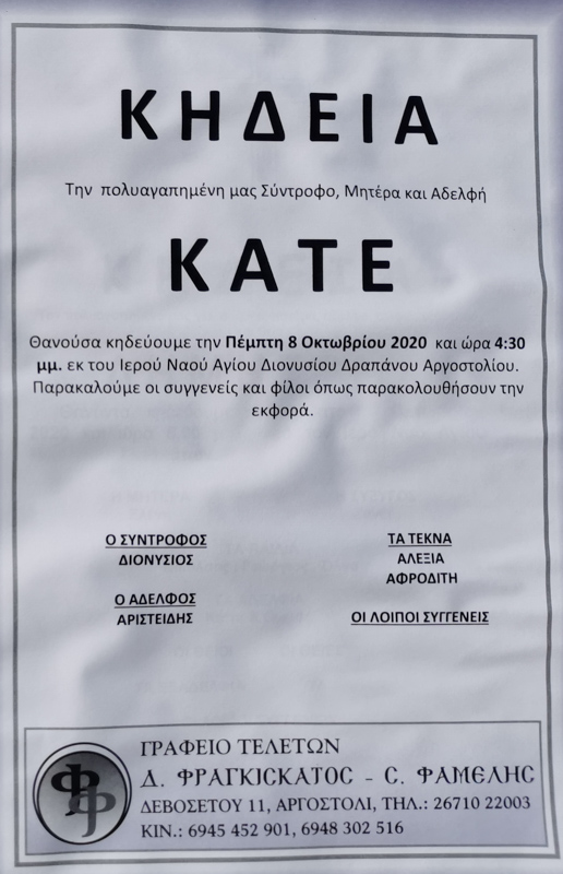 Κηδεία: Κάτε Ανδρεάτου του Γεωργίου – Ετών 58