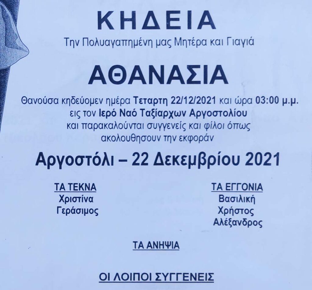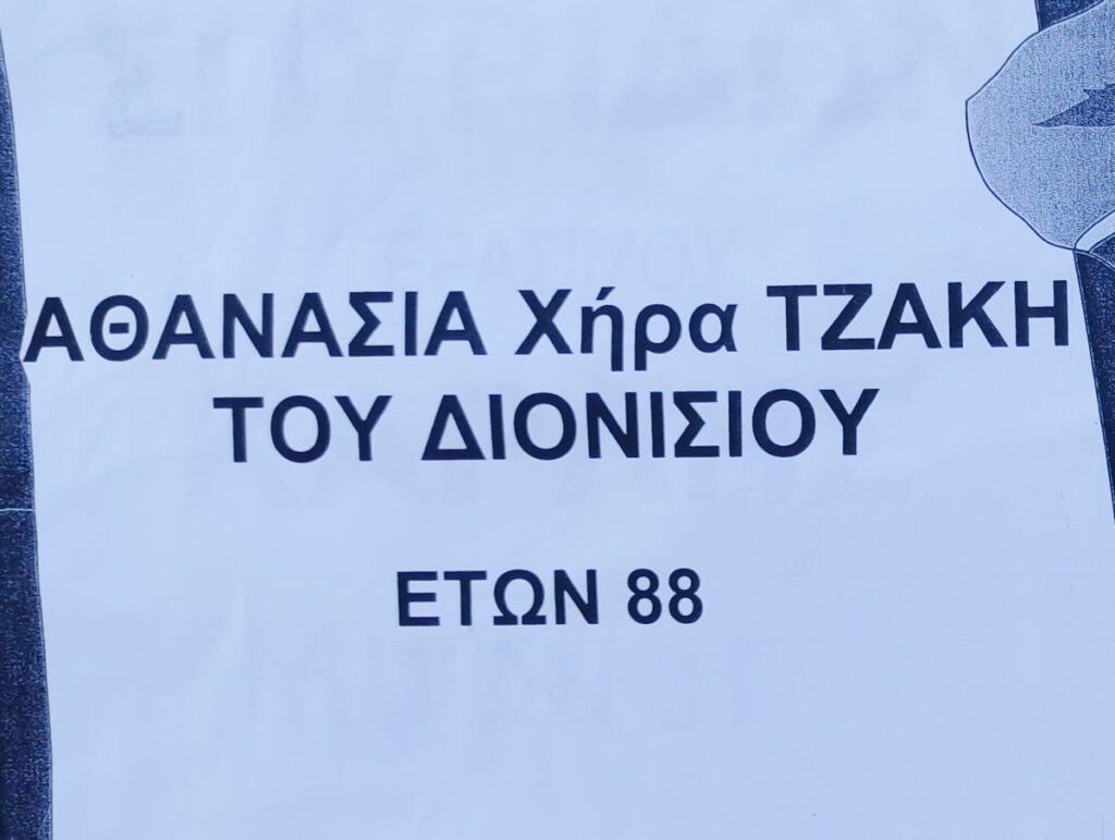 Έφυγε από τη ζωή η Αθανασία (χήρα) Τζάκη του Διονυσίου, ετών 88