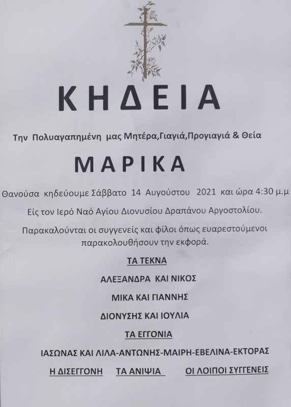 Κηδεία: Μαρίκα Καππάτου – Ετών 87