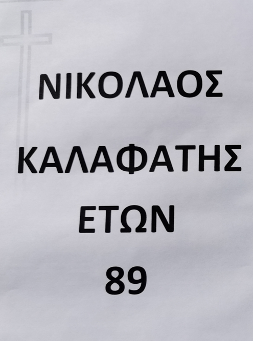 Κηδεία: Νικόλαος Καλαφάτης – Ετών 89