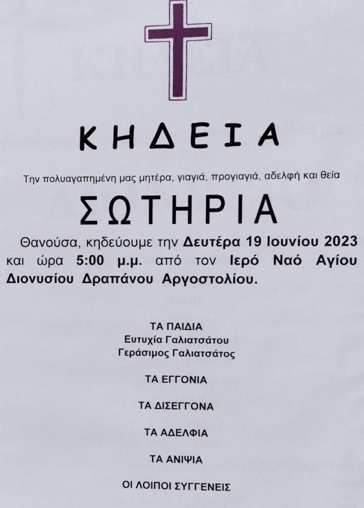 Έφυγε από τη ζωή η Σωτηρία Γασπαρινάτου