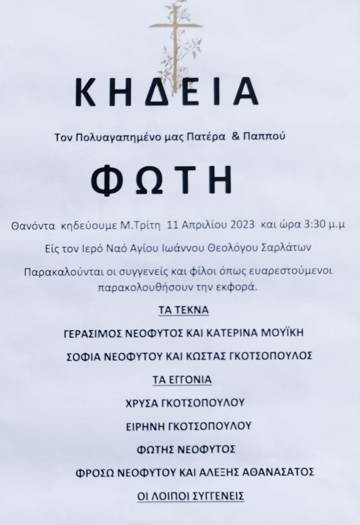 Έφυγε από τη ζωή ο Φώτης Νεόφυτος