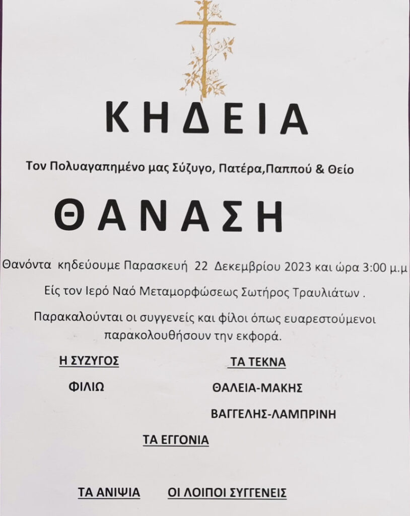 Έφυγε από τη ζωή ο Θανάσης Βαγγελάτος σε ηλικία 84 ετών