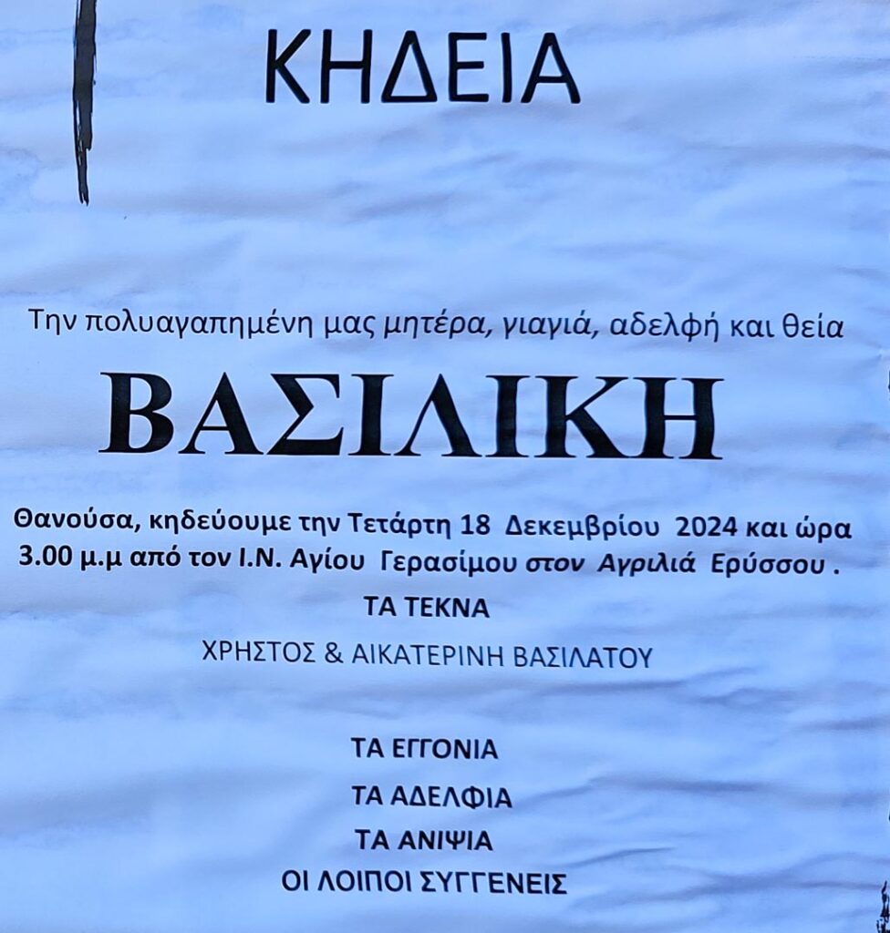 Έφυγε από τη ζωή η Βασιλική Βασιλάτου