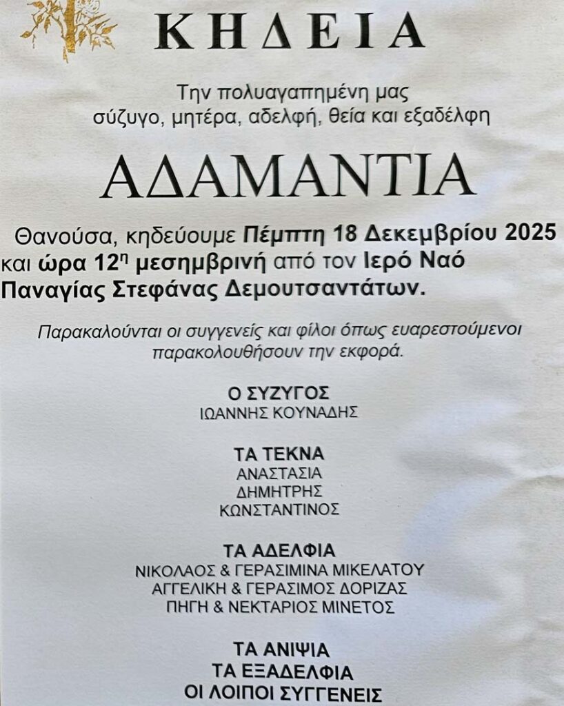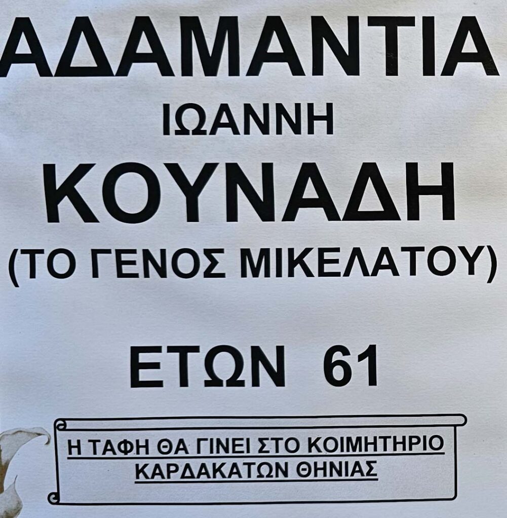 Έφυγε από τη ζωή η Αδαμαντία Κουνάδη σε ηλικία 61 ετών