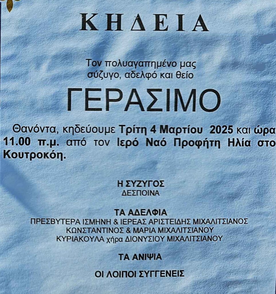 Έφυγε από τη ζωή ο Γεράσιμος Μιχαλιτσιάνος