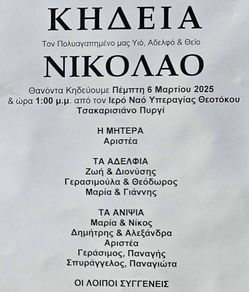 Την Πέμπτη 06/03 η κηδεία του 56χρονου Νικόλα Τρωϊάνου