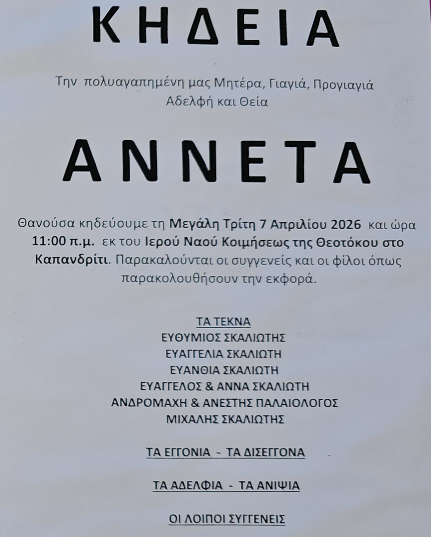 Έφυγε από τη ζωή η Αννέτα Σκαλιώτη