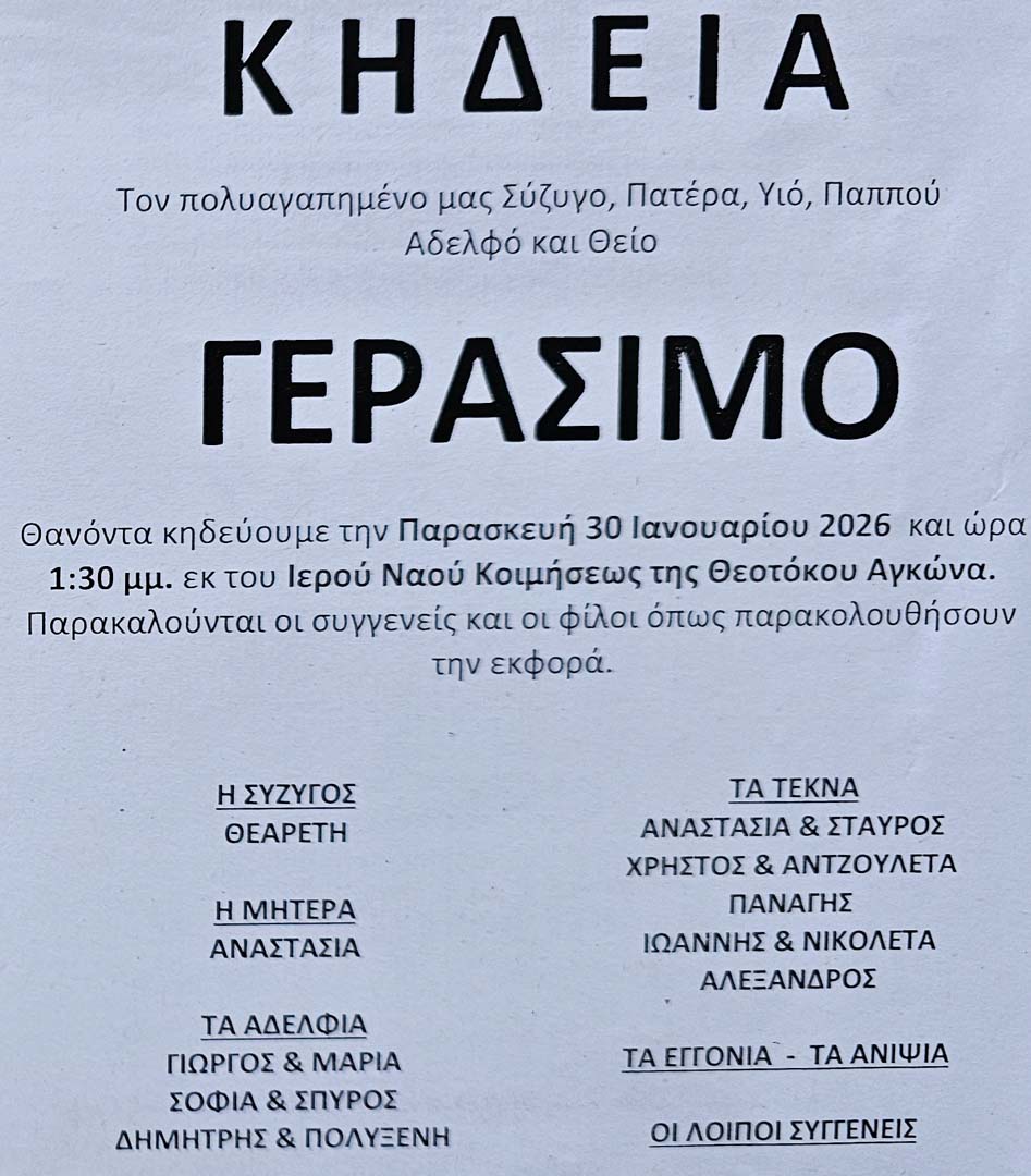 Έφυγε από τη ζωή ο Γεράσιμος Αυγουστινιάτος σε ηλικία 65 ετών