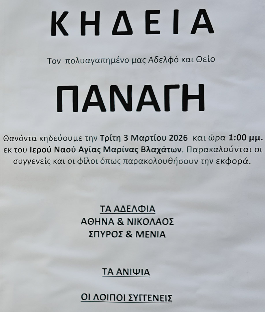 Έφυγε από τη ζωή ο Παναγής Μιχαλάτος (Καπατσώρης)