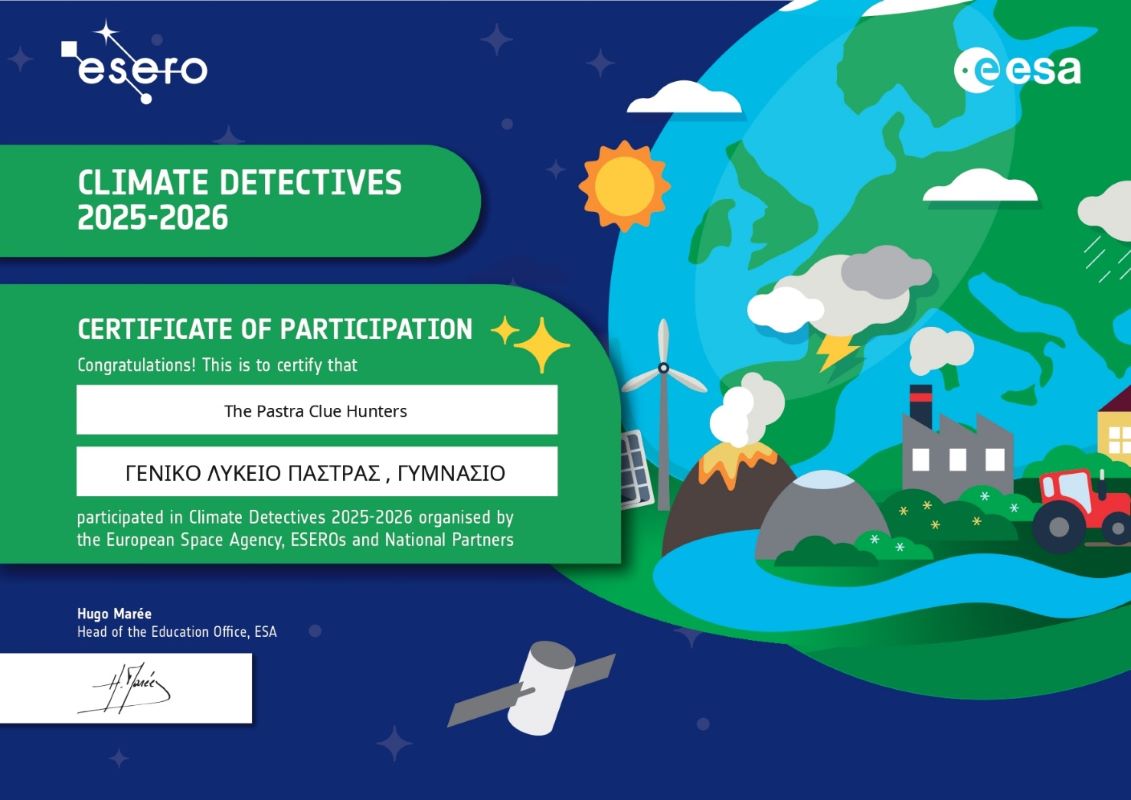 ΓΕΛ & Γυμνάσιο Πάστρας: 2η θέση στον διαγωνισμό Climate Detectives της European Space Agency (ESA)