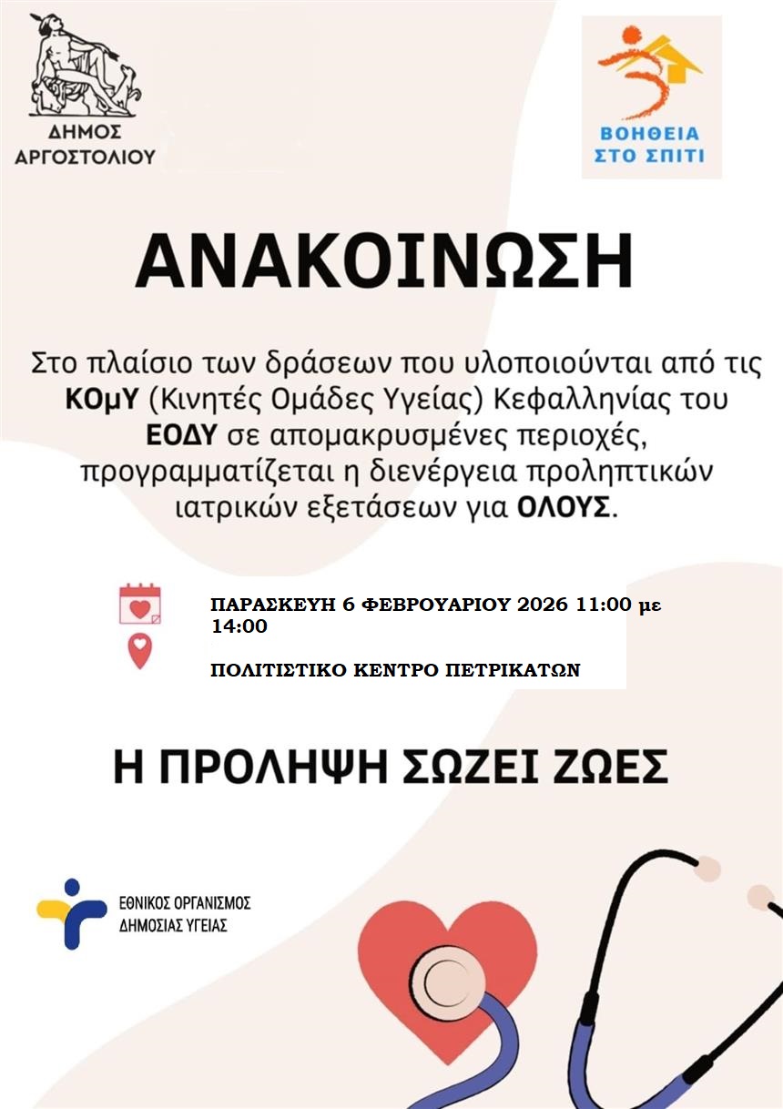 Διενέργεια προληπτικών ιατρικών εξετάσεων για όλους στα Πετρικάτα την Παρασκευή 6/2