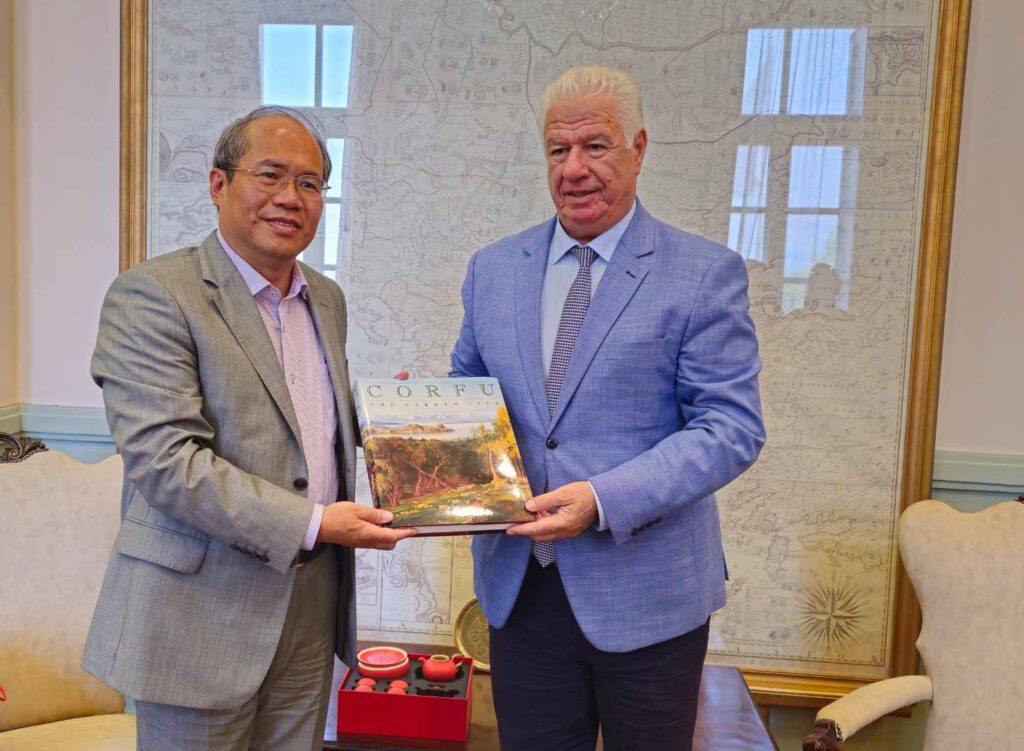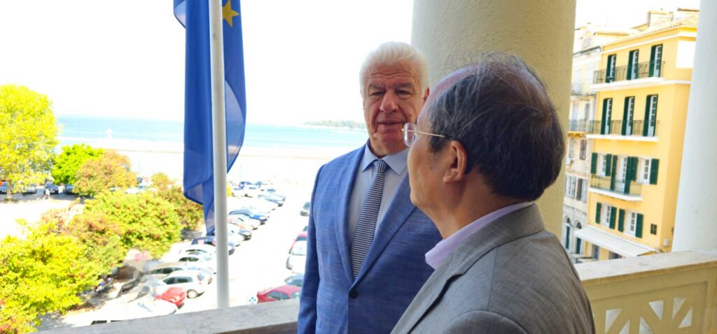 Εθιμοτυπική επίσκεψη στον Περιφερειάρχη Ιονίων Νήσων, Γιάννη Τρεπεκλή, πραγματοποίησε το πρωί της Παρασκευής 30 Αυγούστου, στην έδρα της ΠΙΝ στην Κέρκυρα, ο Πρέσβης της Λαϊκής Δημοκρατίας της Κίνας στην Ελλάδα, Xiao Junzheng.