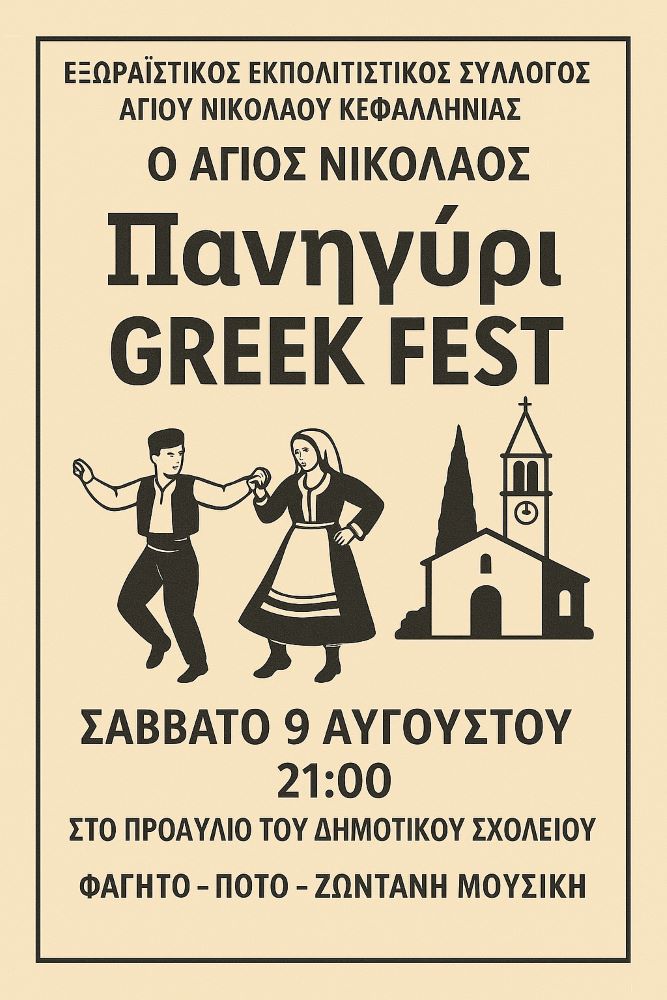 Σας περιμένουμε όλες και όλους στο χωριό μας, το Σάββατο 9 Αυγούστου 2025 και ώρα 21:00, στο προαύλιο του πρώην Δημοτικού Σχολείου της Κοινότητας Αγίου Νικολάου.