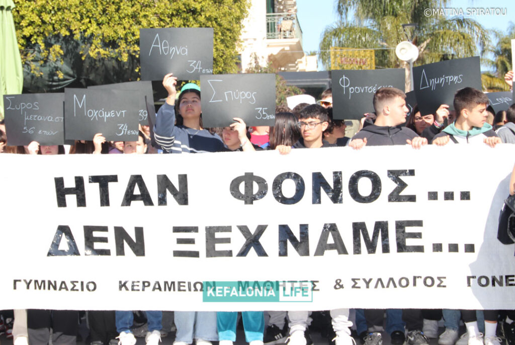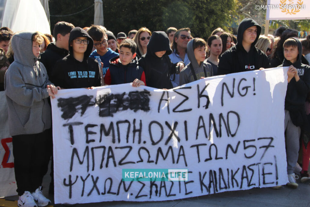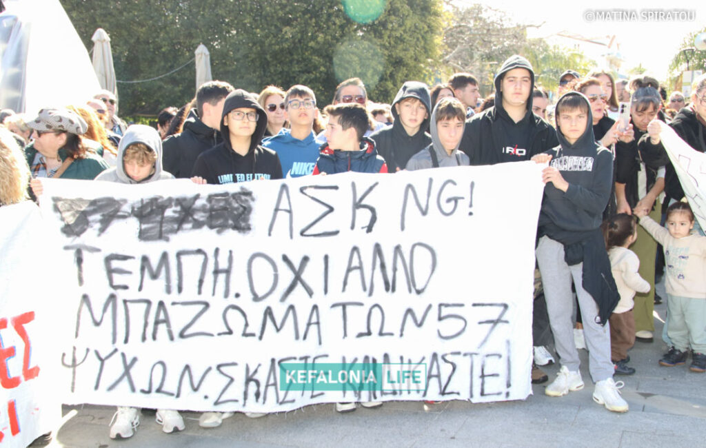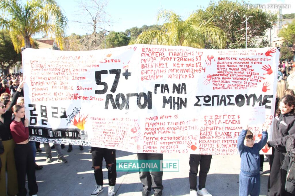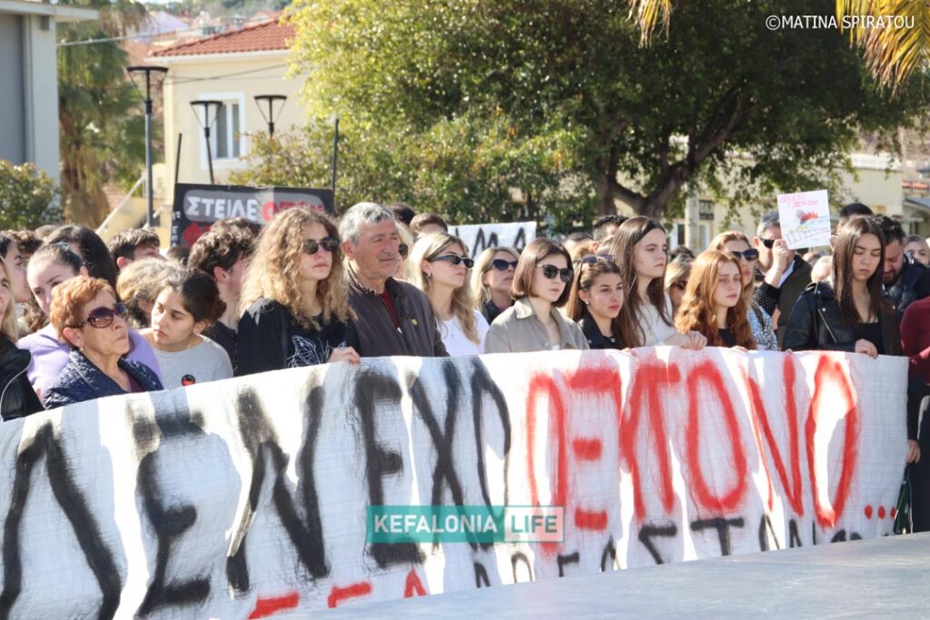 Μετά τα δρώμενα των σχολείων (θα τα βρείτε όλα σε βίντεο) αφιερωμένα στις μνήμες των 57 θυμάτων και τις ομιλίες στην κεντρική πλατεία Αργοστολίου, έγινε πορεία διαμαρτυρίας με τον κόσμο δυναμικά να διασχίζει τη Λεωφόρο Βεργωτή φτάνοντας στην παραλιακή οδό και επιστρέφοντας ξανά στην πλατεία. Όταν η πορεία των πολιτών έφτασε πίσω στην πλατεία, η ουρά της πορείας ήταν ακόμη στα δικαστήρια! Μιλάμε για πάρα μα πάρα πολύ κόσμο!!! Μιλάμε για χιλιάδες πολίτες με ουρά πορείας 2 χιλιομέτρων τουλάχιστον!