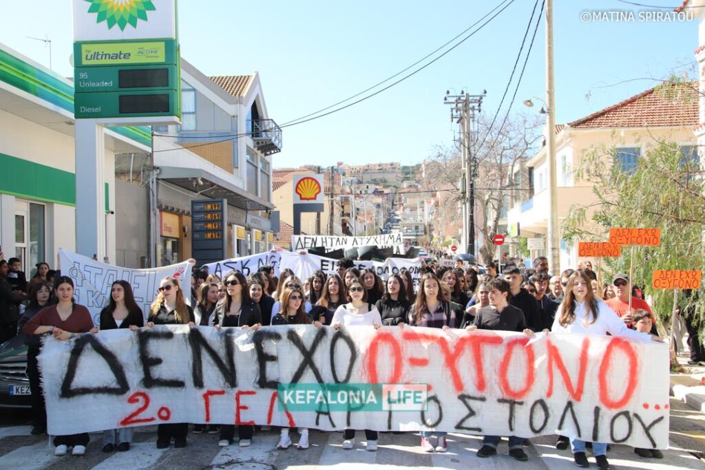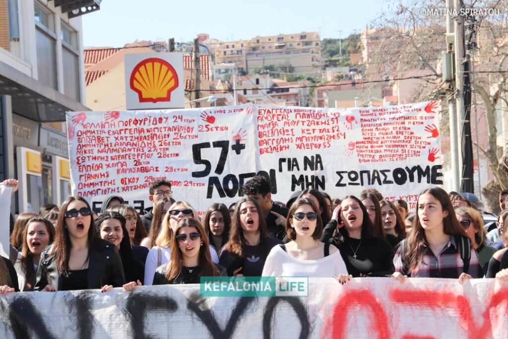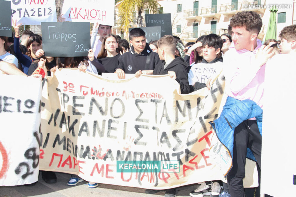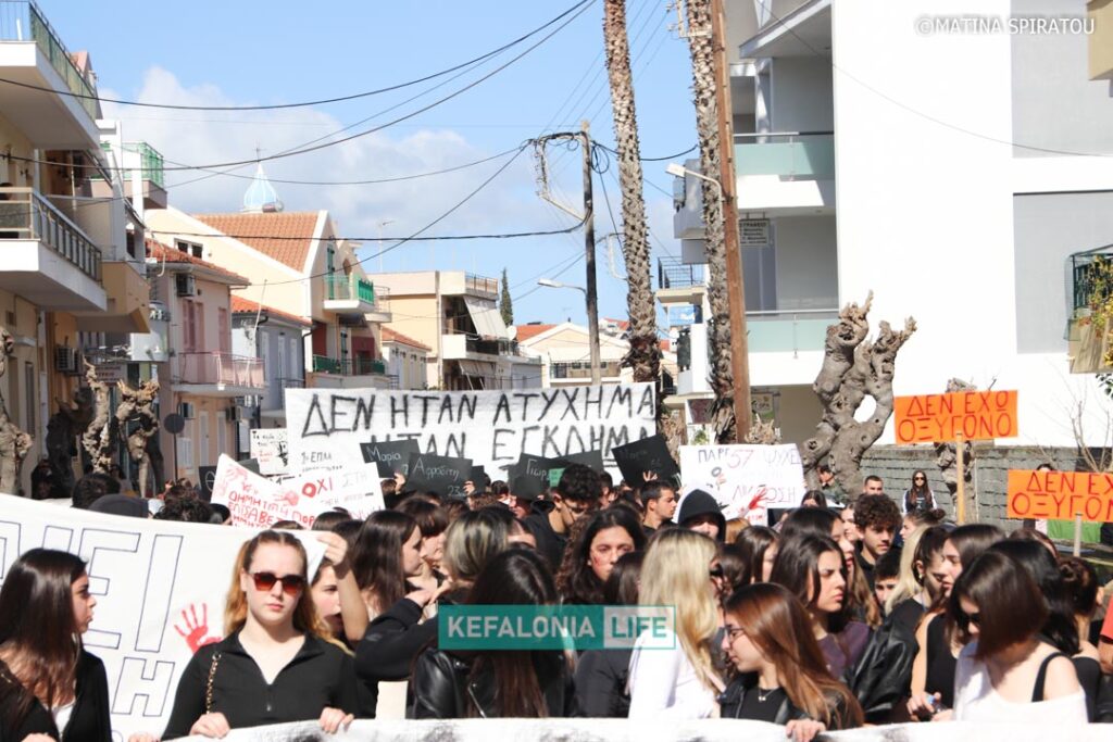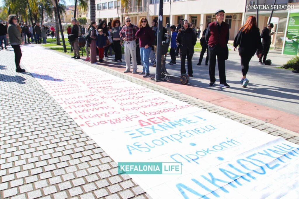 Μετά τα δρώμενα των σχολείων (θα τα βρείτε όλα σε βίντεο) αφιερωμένα στις μνήμες των 57 θυμάτων και τις ομιλίες στην κεντρική πλατεία Αργοστολίου, έγινε πορεία διαμαρτυρίας με τον κόσμο δυναμικά να διασχίζει τη Λεωφόρο Βεργωτή φτάνοντας στην παραλιακή οδό και επιστρέφοντας ξανά στην πλατεία. Όταν η πορεία των πολιτών έφτασε πίσω στην πλατεία, η ουρά της πορείας ήταν ακόμη στα δικαστήρια! Μιλάμε για πάρα μα πάρα πολύ κόσμο!!! Μιλάμε για χιλιάδες πολίτες με ουρά πορείας 2 χιλιομέτρων τουλάχιστον!