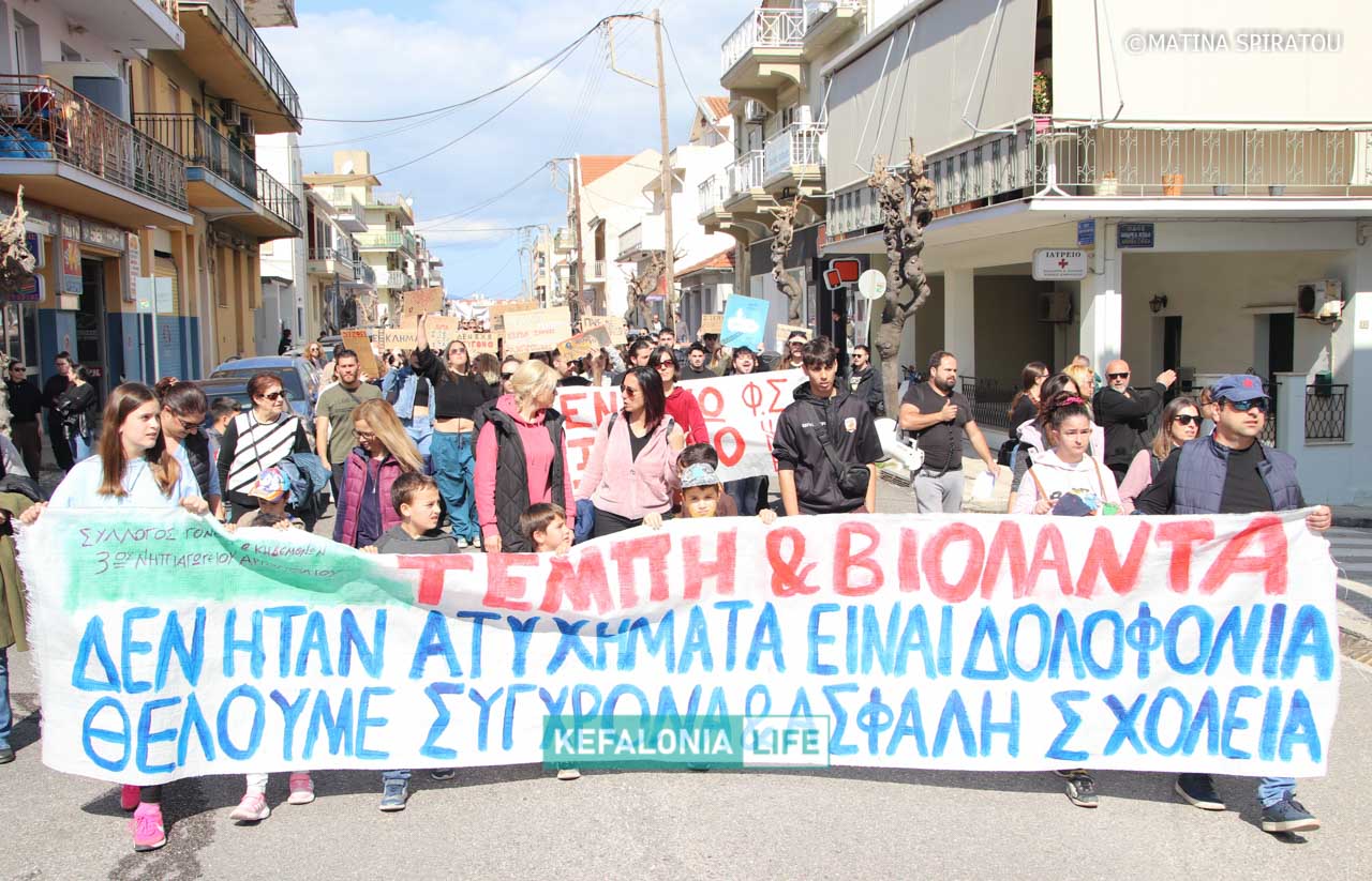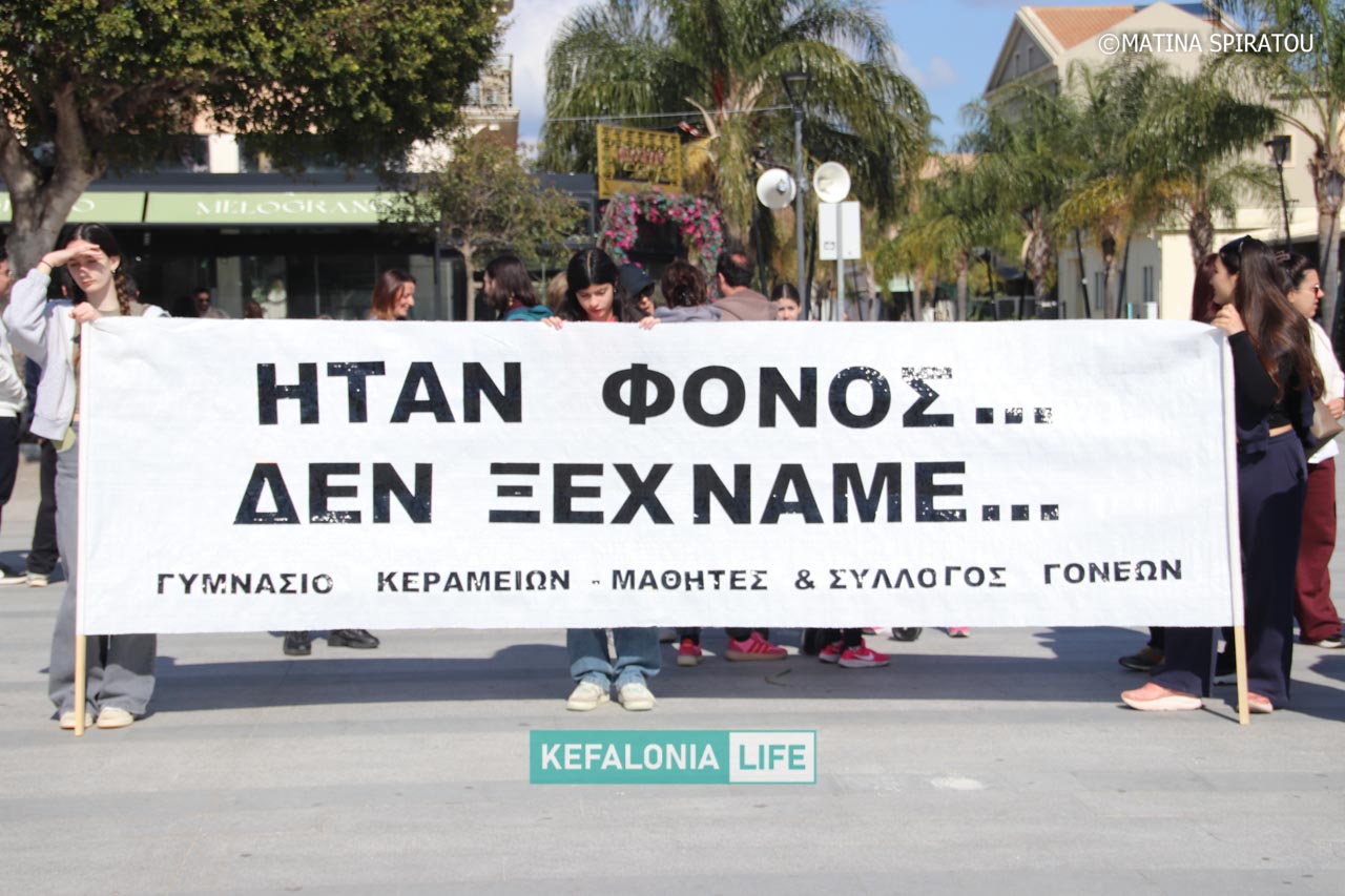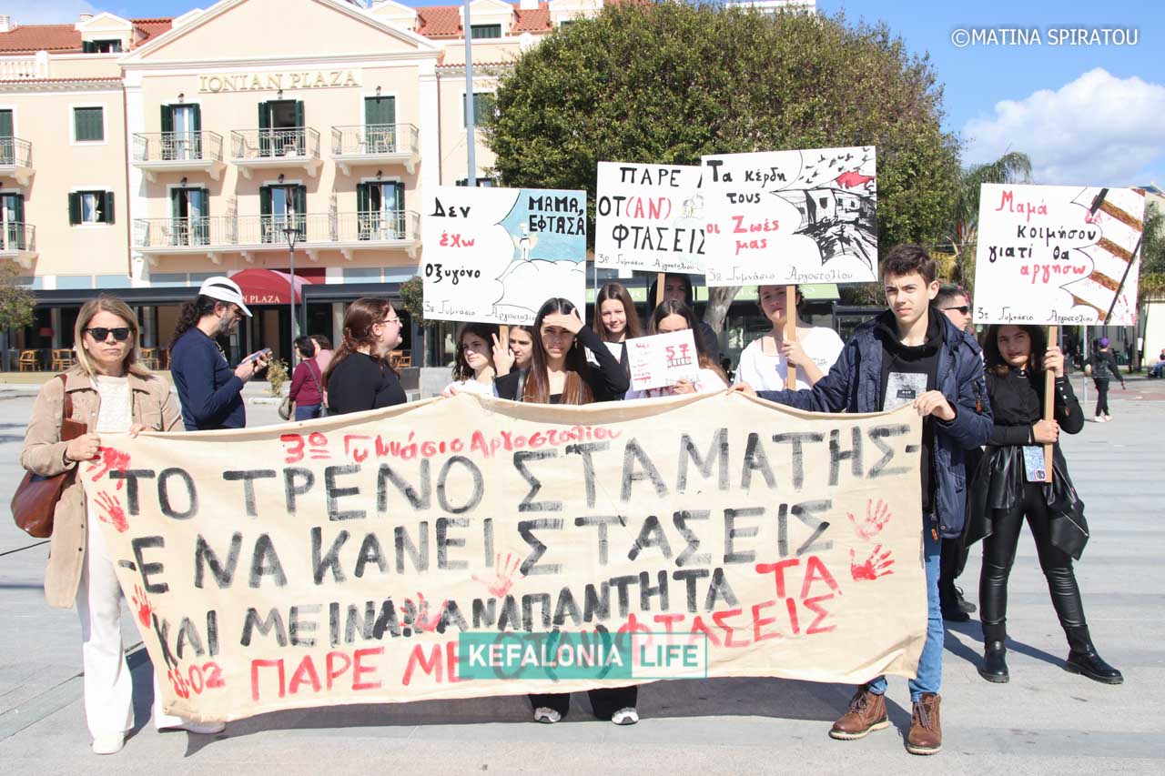 Σήμερα Σάββατο 28 Φεβρουαρίου 2026 στις 11:00 το πρωί πλήθος κόσμου από ολόκληρη την Κεφαλονιά έδωσε μαζικά το “παρών” στην πλατεία Βαλλιάνου στο Αργοστόλι για την πανελλαδική κινητοποίηση τρία χρόνια μετά το έγκλημα στα Τέμπη. Παράλληλα κινητοποιήσεις έχουν οργανωθεί σε όλες σχεδόν τις πόλεις της χώρας μας, με κεντρικό αυτό που οργάνωσαν οι οικογένειες και οι συγγενείς των θυμάτων στο Σύνταγμα στην Αθήνα.
