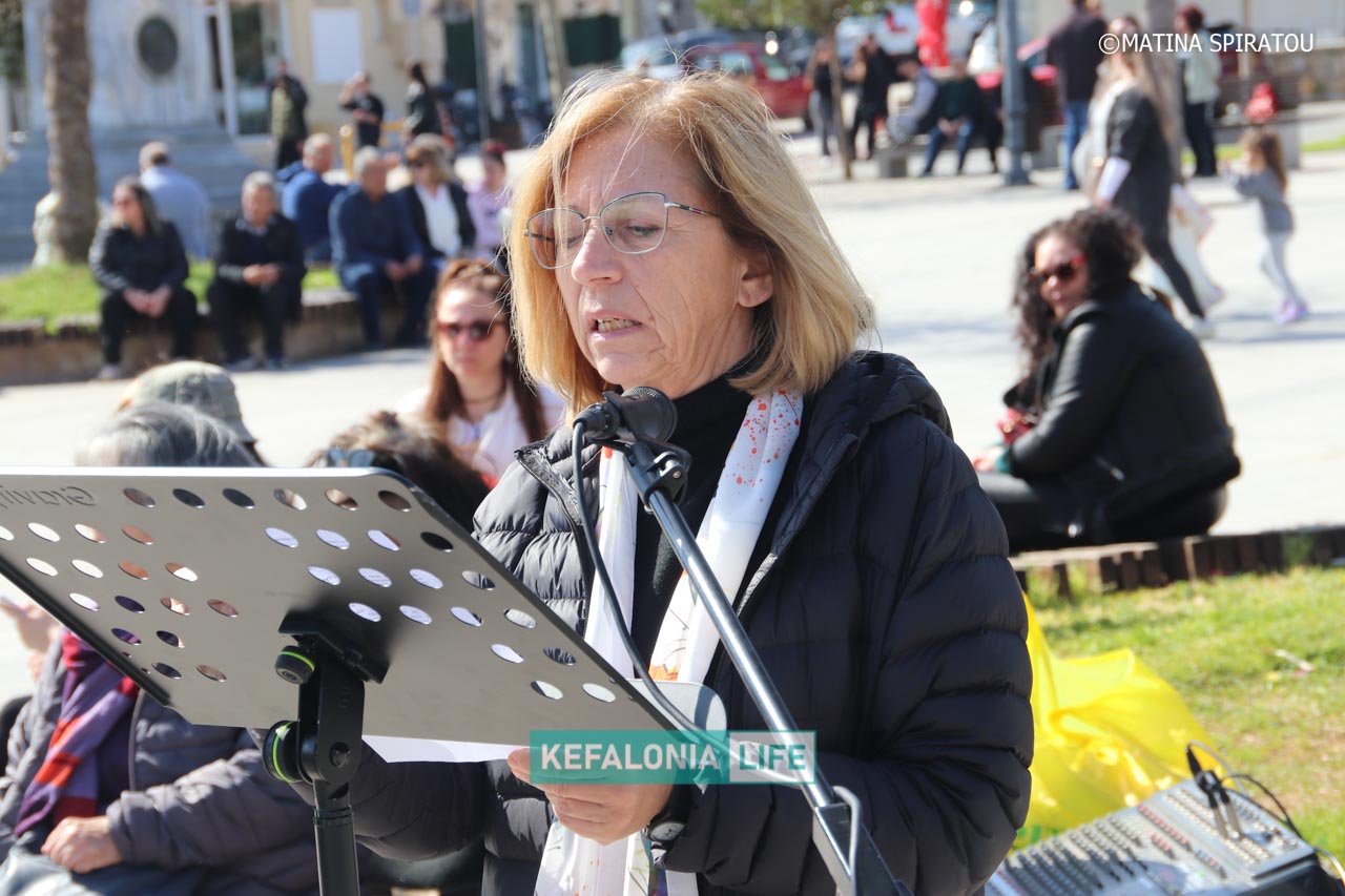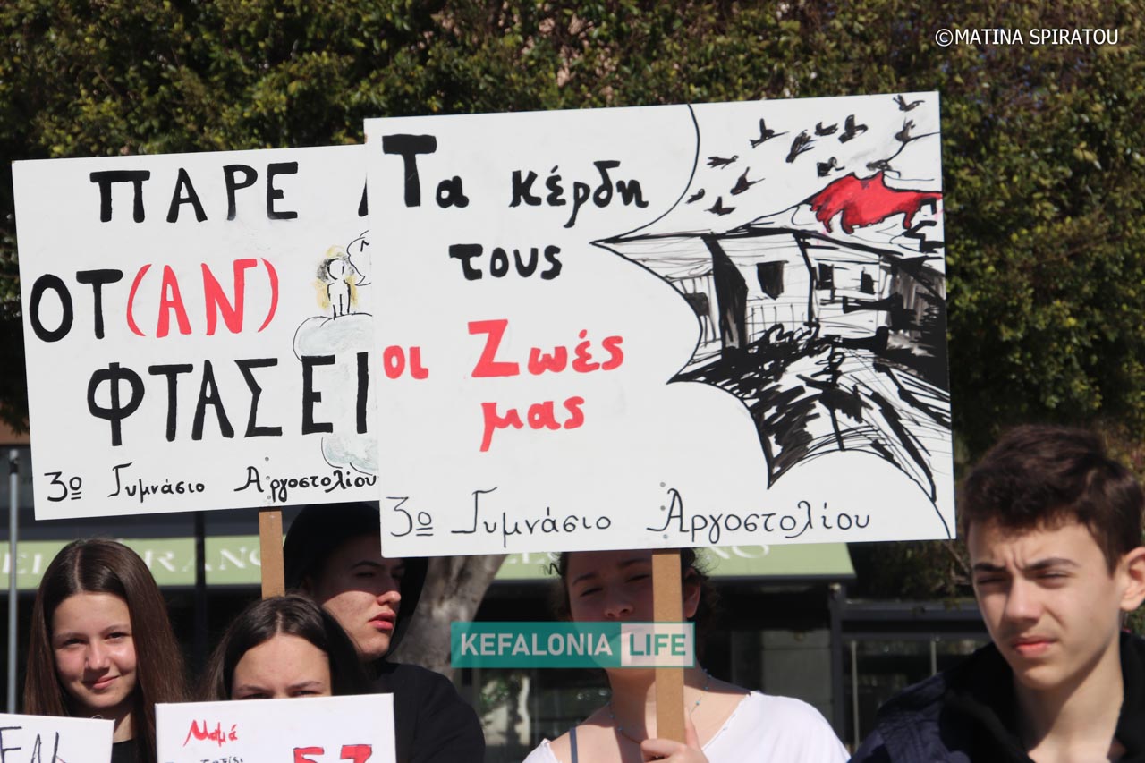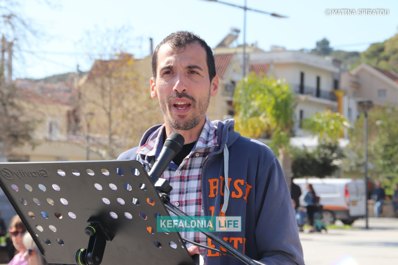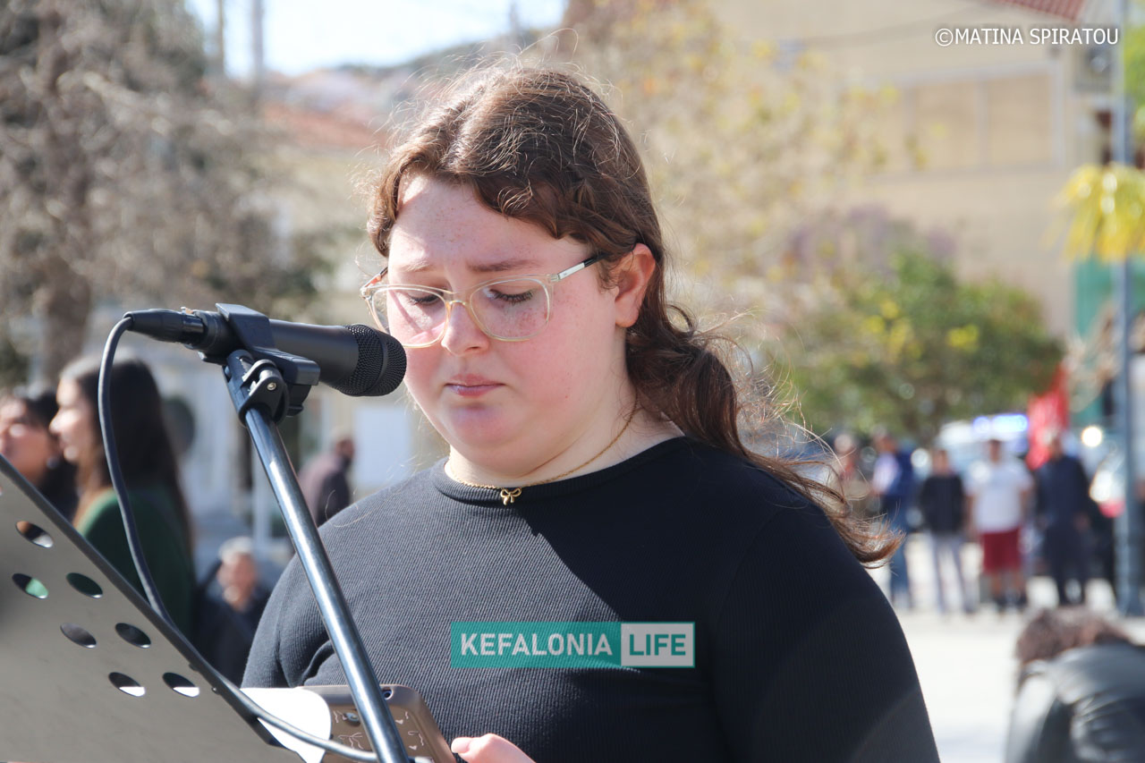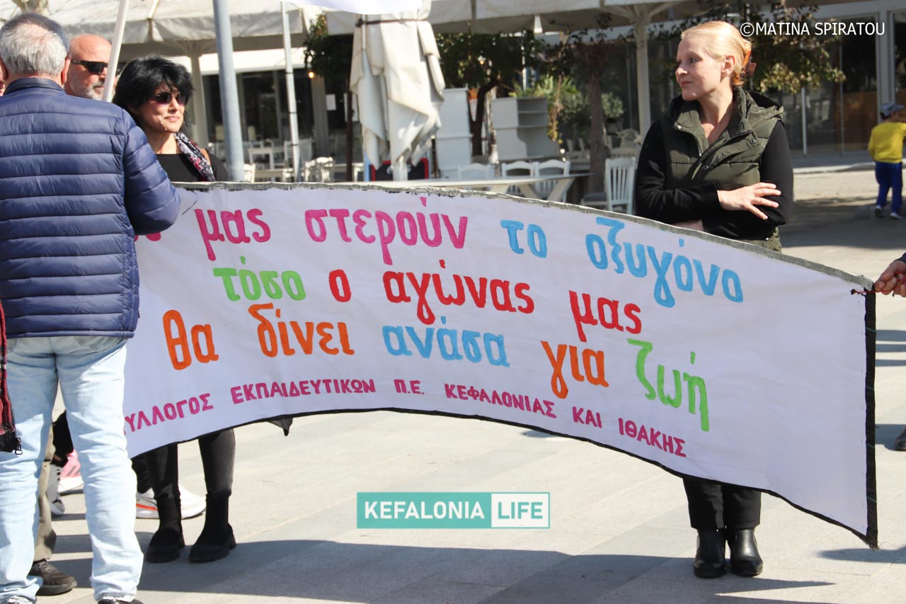Αρχικά, πραγματοποιήθηκαν ομιλίες από μαθητές, εκπαιδευτικούς και εκπροσώπους φορέων στην κεντρική πλατεία Αργοστολίου. Έγινε έντονη κριτική σε σοβαρά προβλήματα που αντιμετωπίζουν τα σχολικά κτίρια και οι κρατικές υποδομές, και στις συνθήκες εργασίας και διαβίωσης. Ισχυρή αναφορά έγινε στο τραγικό δυστύχημα στο εργαστάσιο ΒΙΟΛΑΝΤΑ, αλλά και στο περιστατικό στο Αεροδρόμιο, που κόστισε τη ζωή της Μαρίας Λαδά από το Ληξούρι με ξεκάθαρη χροιά κατά των ενεργειών και των αποφάσεων της Κυβέρνησης διαχρονικά. Στη συνέχεια έγινε πορεία διαμαρτυρίας με τον κόσμο δυναμικά με πανό και συνθήματα να διασχίζει τη Λεωφόρο Βεργωτή φτάνοντας στην παραλιακή οδό και επιστρέφοντας ξανά στην πλατεία.