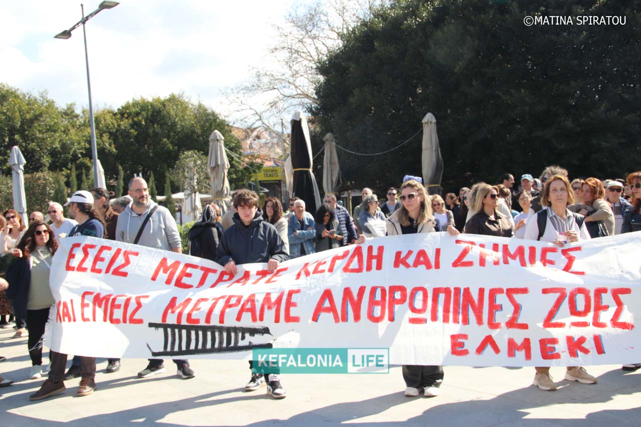 Μπράβο σε όλους όσους, Κεφαλονίτες και μη, μπόρεσαν και ήθελαν να έρθουν στο πανελλήνιο αυτό κάλεσμα για τις αθώες ψυχές. Να σημειωθεί ότι τα περισσότερα καταστήματα στο Αργοστόλι έκλεισαν συμβολικά, ενώ είδαμε πολλούς επαγγελματίες να συμμετέχουν και ενεργά στη σημερινή κινητοποίηση.