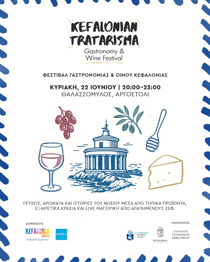 Το Kefalonian Tratarisma – Φεστιβάλ Γαστρονομίας και Οίνου της Κεφαλονιάς, θα λάβει χώρα για 2η συνεχόμενη χρονιά την Κυριακή 22 Ιουνίου στον Θαλασσόμυλο στο Αργοστόλι!