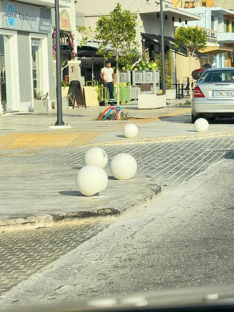 - Τσιμεντένιες λευκές μπάλες: Οι μπάλες που έχουν τοποθετηθεί σε διάφορα σημεία αποτελούν επιλογή άλλης εποχής. Το υλικό και το χρώμα είναι ακατάλληλα, καθώς ήδη έχουν λερωθεί και σύντομα θα συγκεντρώσουν αυτοκόλλητα και τσίχλες.
