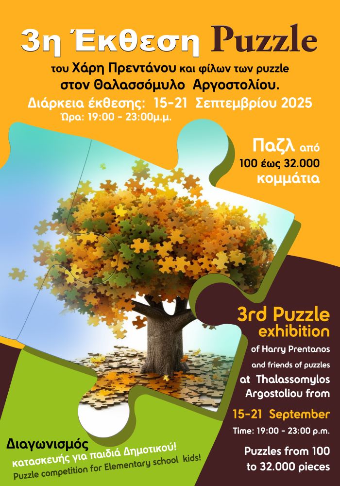 Θα έχει επίσης διαγωνισμό γρηγορότερης κατασκευής παζλ με 100 κομμάτια για παιδιά Δημοτικού, με δώρο ένα παζλ της αρεσκείας των νικητών.