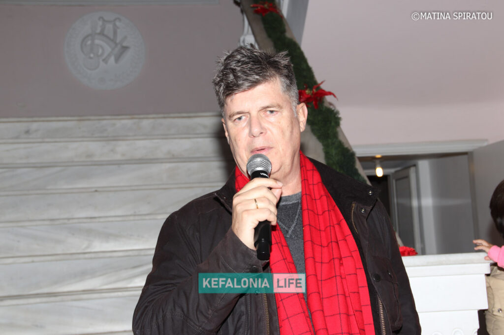 Αμέσως μετά έγινε η φωταγώγηση του παραδοσιακού καραβιού, ενώ σύντομο χαιρετισμό έδωσε ο Γεράσιμος Βεργωτής, Πρόεδρος Φιλαρμονικής Σχολής Κεφαλληνίας, μαζί με την Ειρήνη Καραγιάννη, τη νέα καλλιτεχνική Διευθύντρια της Σχολής.