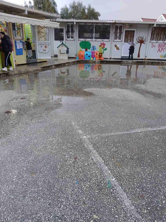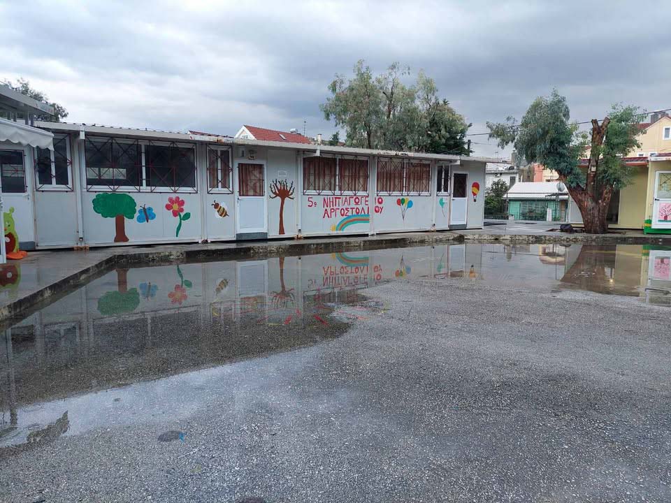 Δεν μπορεί και δε γίνεται να αφήνει η Δημοτική Αρχή Αργοστολίου μικρά παιδιά (νήπια και προνήπια) να τσαλαβουτάνε μέσα στα νερά για τις βασικές ανάγκες τους εντός της σχολικής μονάδας όπου πηγαίνουν. Επίσης, οι τουαλέτες του σχολείου είναι ΕΞΩΤΕΡΙΚΕΣ, ενώ οι μαθητές κάνουν μάθημα σε προκατασκευασμένες αίθουσες. Με τα συσσωρευμένα νερά η πρόσβαση σε αυτές είναι αδύνατη. Δεν μπορεί οι μικροί μαθητές να “κολυμπούν” στα νερά για όλα… το φθινόπωρο και το χειμώνα κυρίως που βρέχει.