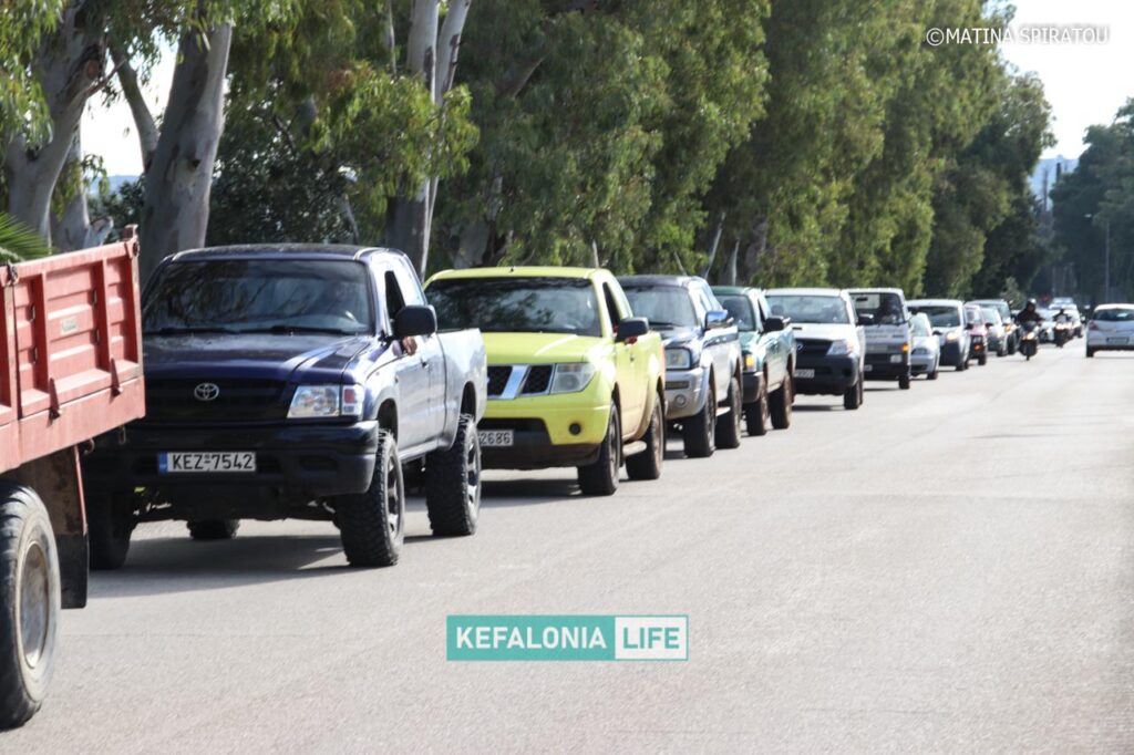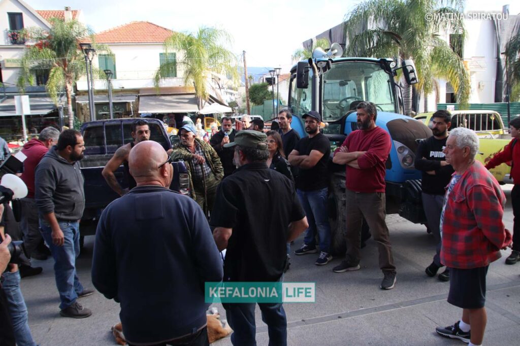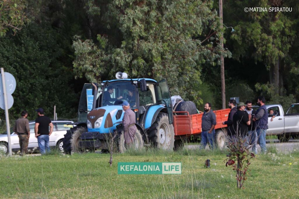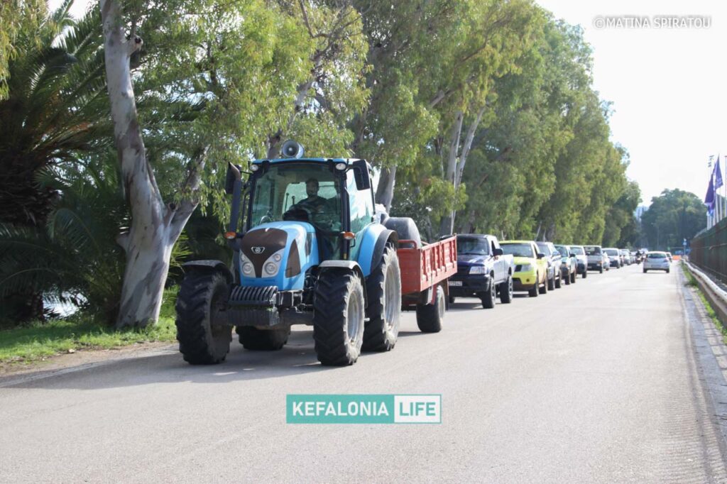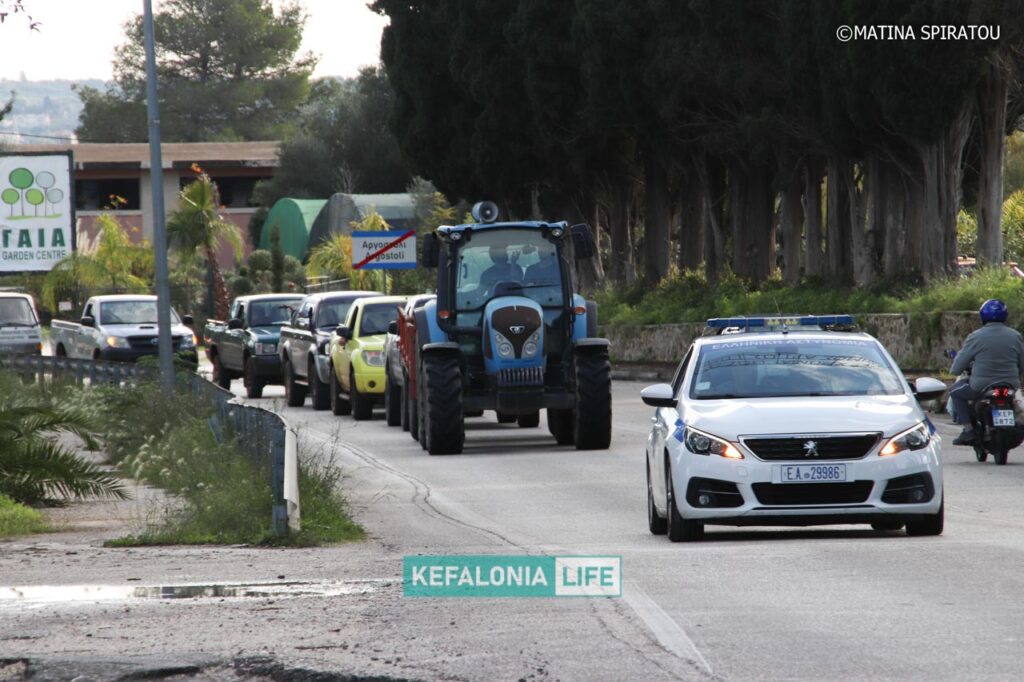 Αρχικά, λίγο μετά τις 11:30 έκλεισαν τον κόμβο στην Κρανιά, συμβολικά για 15 λεπτά και στη συνέχεια με τη βοήθεια της Αστυνομικής Υπηρεσίας Κεφαλονιάς έκαναν μηχανοκίνητη πορεία μέχρι το κτήριο της Περιφερειακής Ενότητας Κεφαλονιάς στο Αργοστόλι. Εκεί αφού μίλησαν για τα οξυμένα προβλήματά τους συναντήθηκαν και με τον Αντιπεριφερειάρχη Κεφαλονιάς – Ιθάκης Σωτήρη Κουρή.