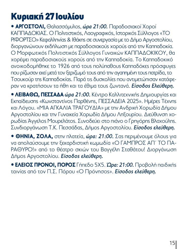 Το Πρόγραμμα Καλοκαιρινών Εκδηλώσεων για το 2025 του Δήμου Αργοστολίου