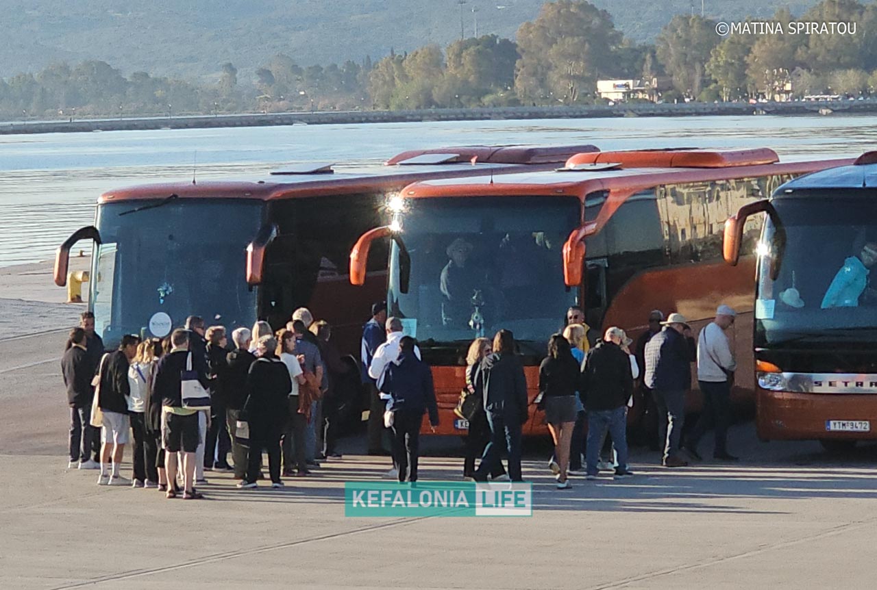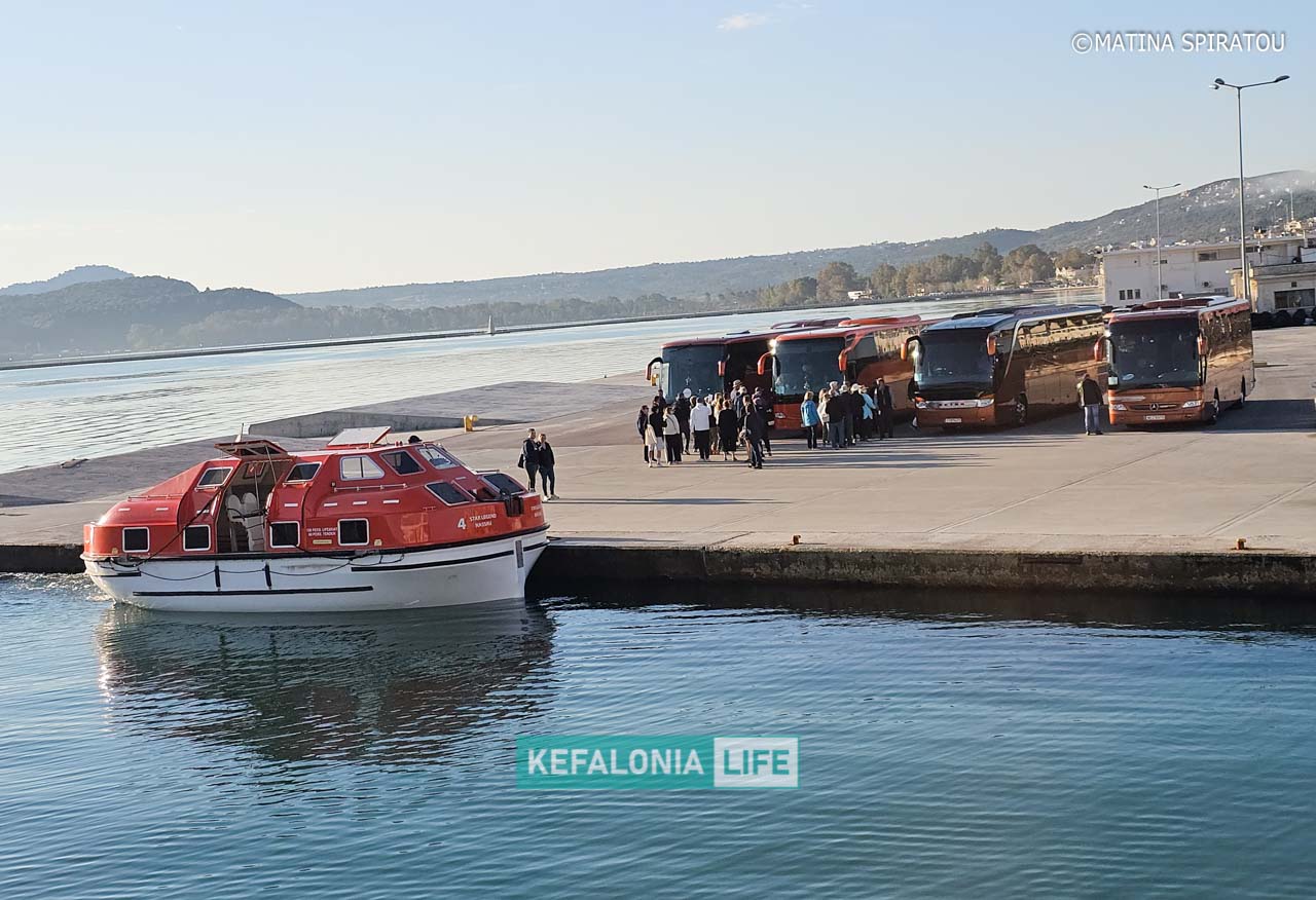 Σύμφωνα με την εικόνα στο λιμάνι, η διαδικασία εξελίχθηκε ομαλά, με τους περισσότερους επιβάτες να επιβιβάζονται σχεδόν άμεσα σε τέσσερα τουριστικά λεωφορεία που τους ανέμεναν κοντά στο Λιμεναρχείο Αργοστολίου, προκειμένου να ξεκινήσουν οργανωμένες εκδρομές στο νησί.