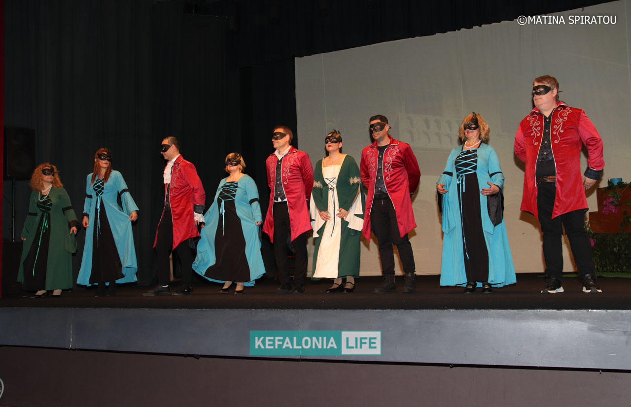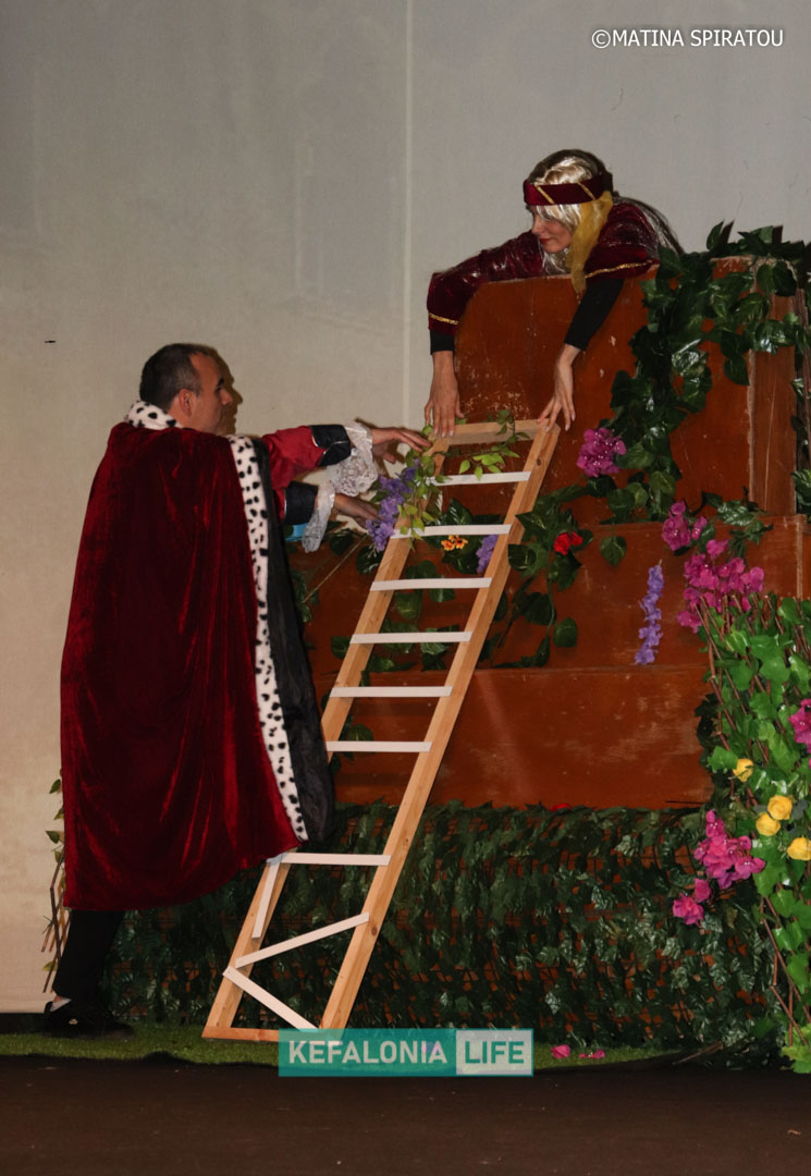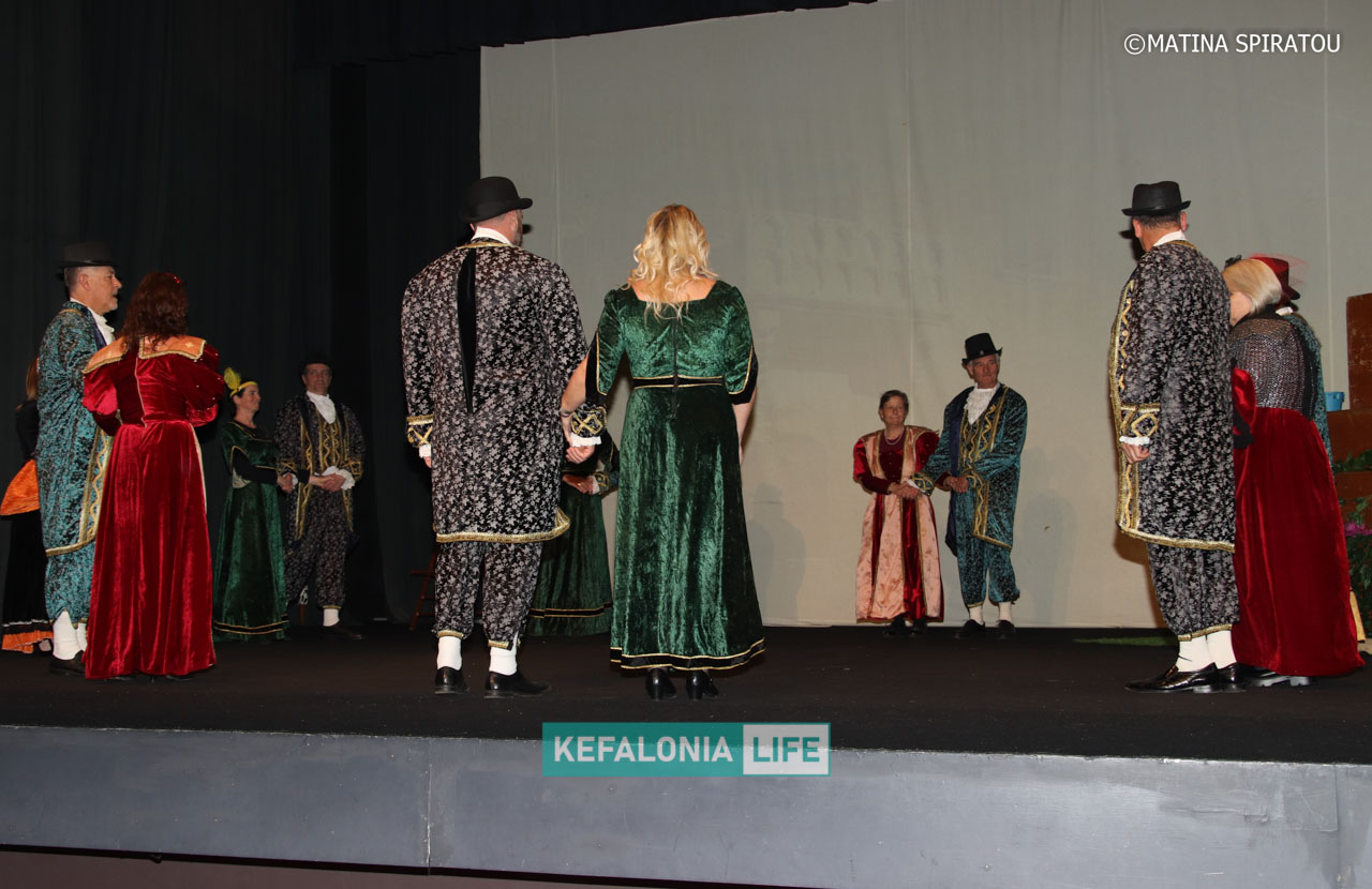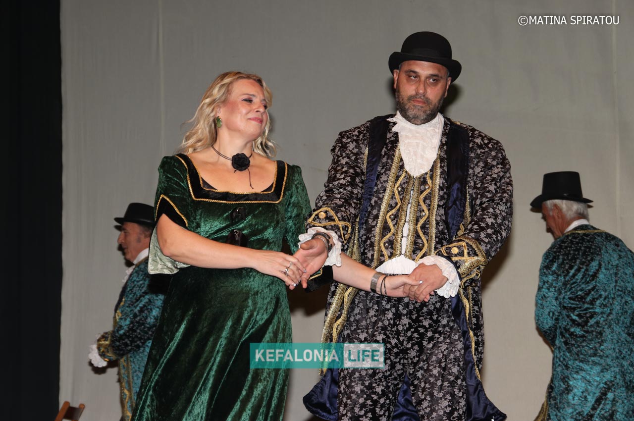 Ιδιαίτερο ενδιαφέρον συγκέντρωσε το μίνι θεατρικό «Ρωμαίος και Ιουλιέτα», σε κείμενα και σκηνοθεσία της Τζένης Παπαδημάτου. Με χιούμορ, ανατροπές και σαφείς αναφορές στην κεφαλονίτικη κουλτούρα, το κλασικό έργο παρουσιάστηκε μέσα από μια αποκριάτικη, σατιρική ματιά, προσφέροντας άφθονο γέλιο και στιγμές αυθεντικής ψυχαγωγίας. Ρωμαίος ήταν ο Λαμπρογιάννης Πεφάνης και Ιουλιέτα η Βάνια Σαμόλη. Το θεατρικό έκλεισαν με καντάδες οι κανταδόροι από τη Λειβαθώ.