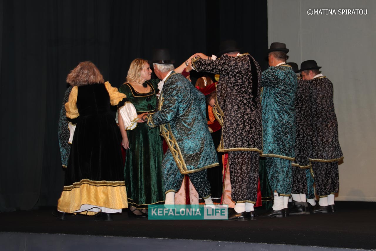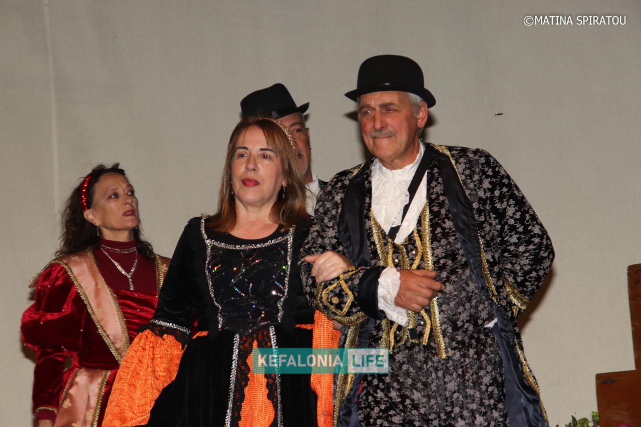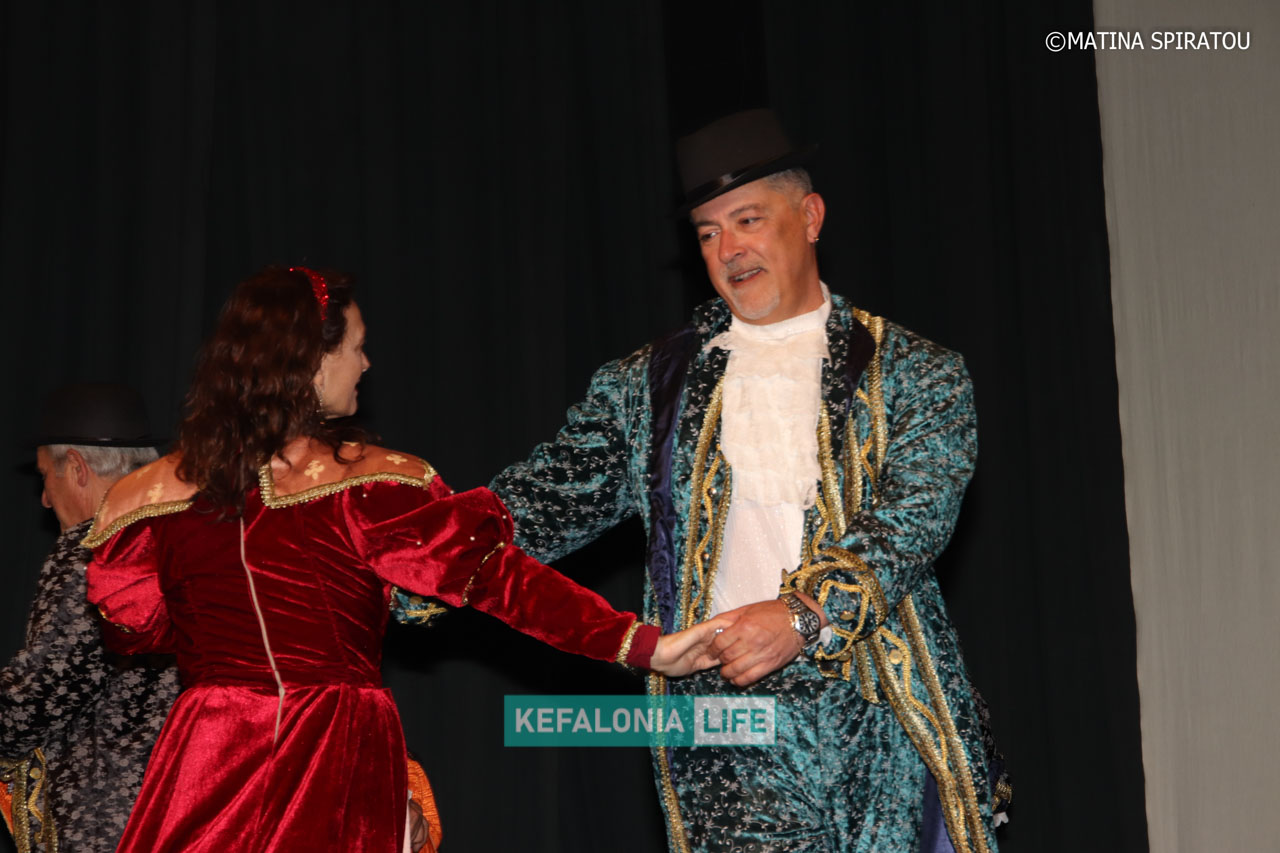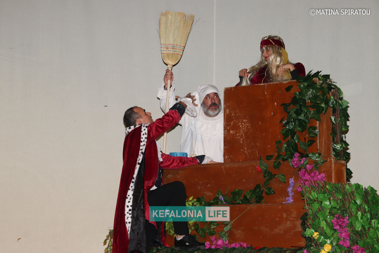 Ιδιαίτερο ενδιαφέρον συγκέντρωσε το μίνι θεατρικό «Ρωμαίος και Ιουλιέτα», σε κείμενα και σκηνοθεσία της Τζένης Παπαδημάτου. Με χιούμορ, ανατροπές και σαφείς αναφορές στην κεφαλονίτικη κουλτούρα, το κλασικό έργο παρουσιάστηκε μέσα από μια αποκριάτικη, σατιρική ματιά, προσφέροντας άφθονο γέλιο και στιγμές αυθεντικής ψυχαγωγίας. Ρωμαίος ήταν ο Λαμπρογιάννης Πεφάνης και Ιουλιέτα η Βάνια Σαμόλη. Το θεατρικό έκλεισαν με καντάδες οι κανταδόροι από τη Λειβαθώ.