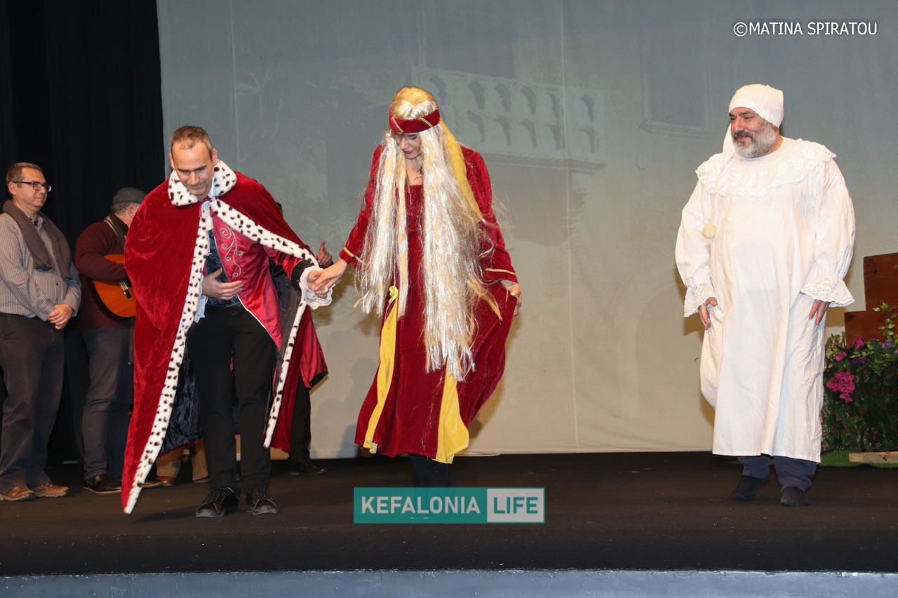 Το φετινό δρώμενο κινήθηκε σε μια αύρα παραμυθιού, λιγάκι «πειραγμένου», όπως άλλωστε επιβάλλει το πνεύμα των Αποκριών και της κεφαλονίτικης κουλτούρας. Το πρόγραμμα περιλάμβανε ένα σύντομο εισαγωγικό σκετσάκι, τη στέψη της Βασίλισσας, χορευτικά, καντάδες, αλλά και ένα μίνι θεατρικό, που απέσπασε το θερμό χειροκρότημα του κοινού. Το αποτέλεσμα ήταν μια βραδιά γεμάτη ζωντάνια και κεφαλονίτικο ταπεραμέντο. Την εκδήλωση παρουσίασε η Χαρά Μαρκέτου.