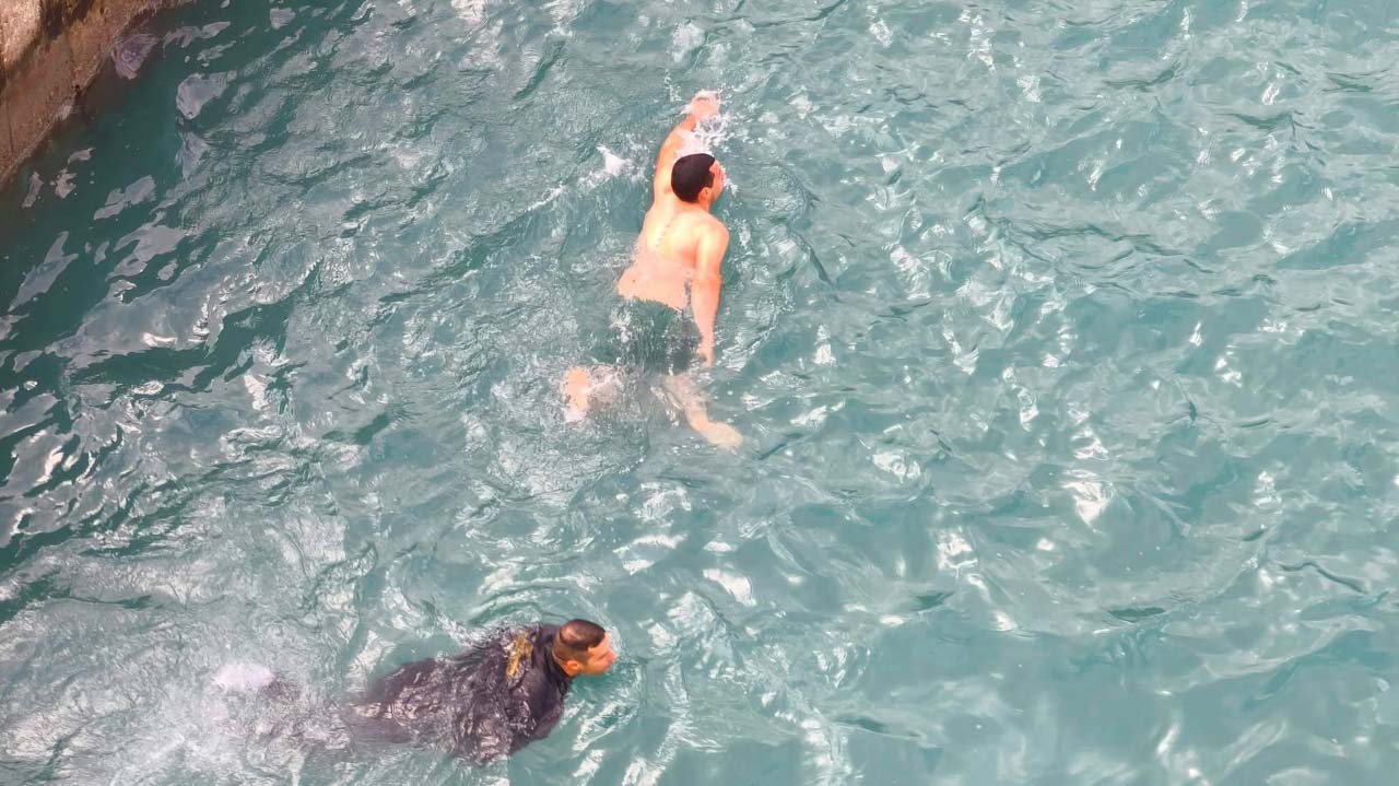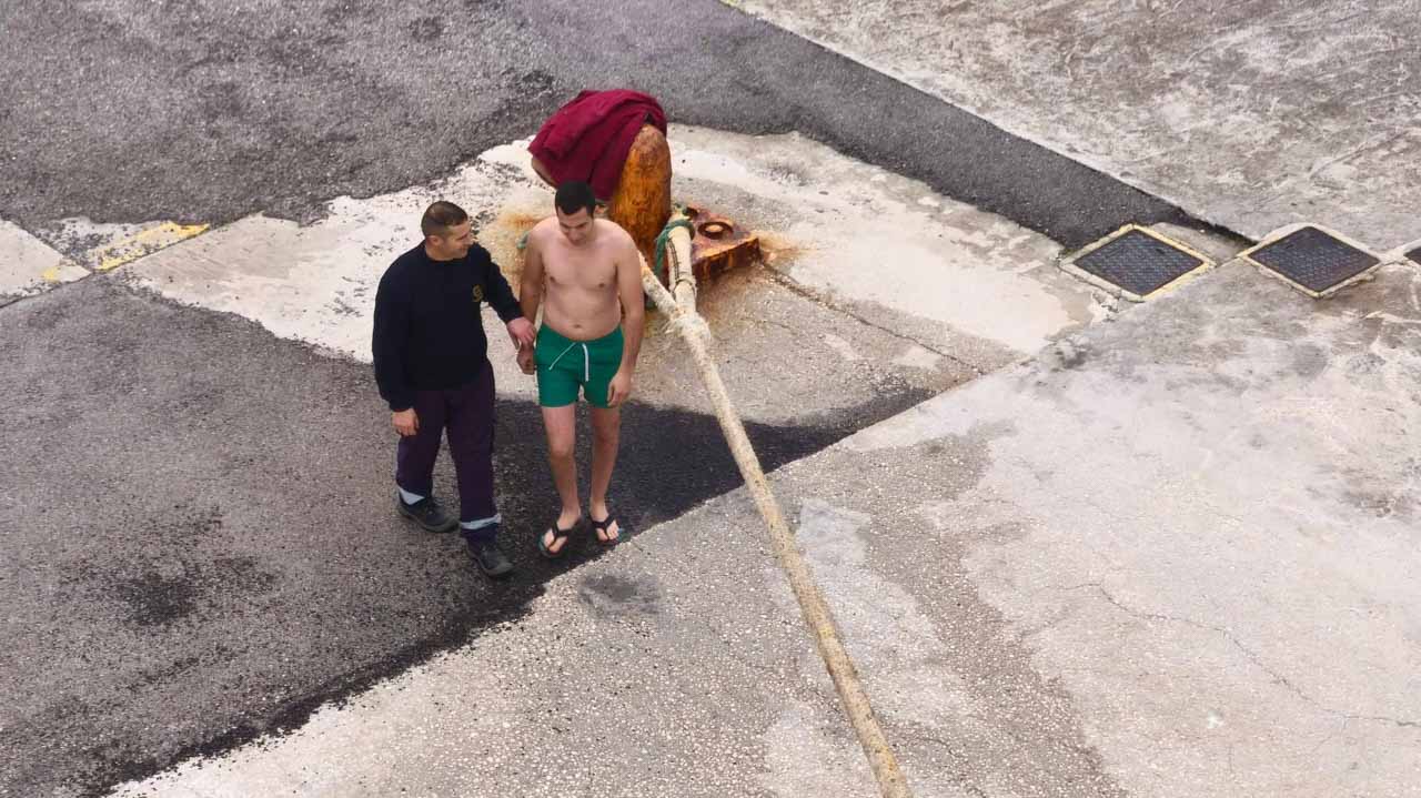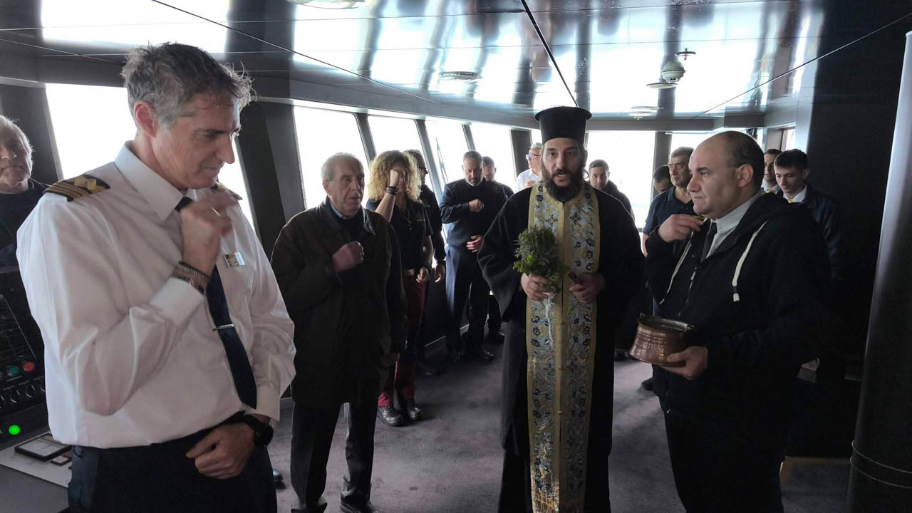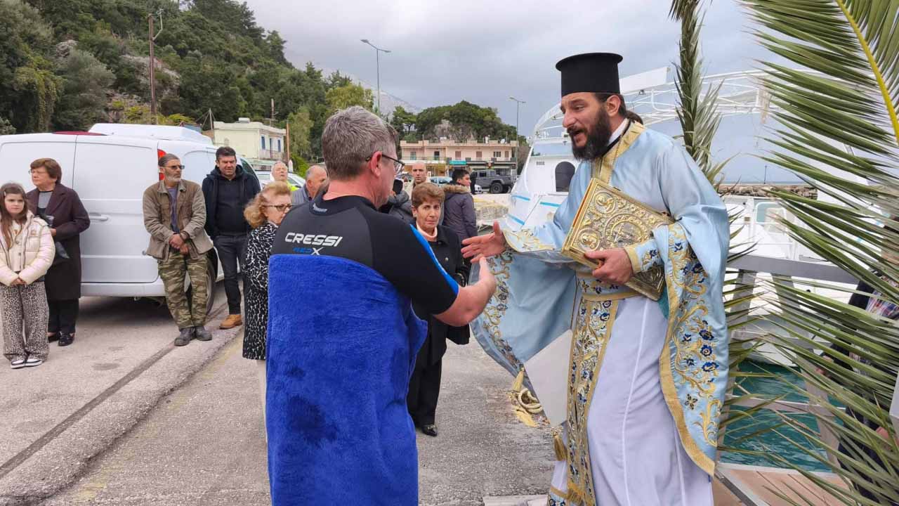 Τέλος, πιστοί πήγαν και στο Φέρι Μποτ Fior Di Levante των φιλόξενων Καπετάνιων Νίκου Γρηγορόπουλου και Ηλία Τσιγάντε όπου έγινε ο Αγιασμός του Καραβιού και τους δόθηκαν ευχές για καλή χρονιά και καλά ταξίδια! Εκεί, βούτηξαν για τον Τίμιο Σταυρό οι πανάξιοι ναυτικοί του Φέρι Μποτ Fior Di Levante Χρήστος Τσαλούφης και Δημοσθένης Μαρούλης οι οποίοι έλαβαν την ευλογία του Πατέρα Κωνσταντίνου Ζαπάντη!