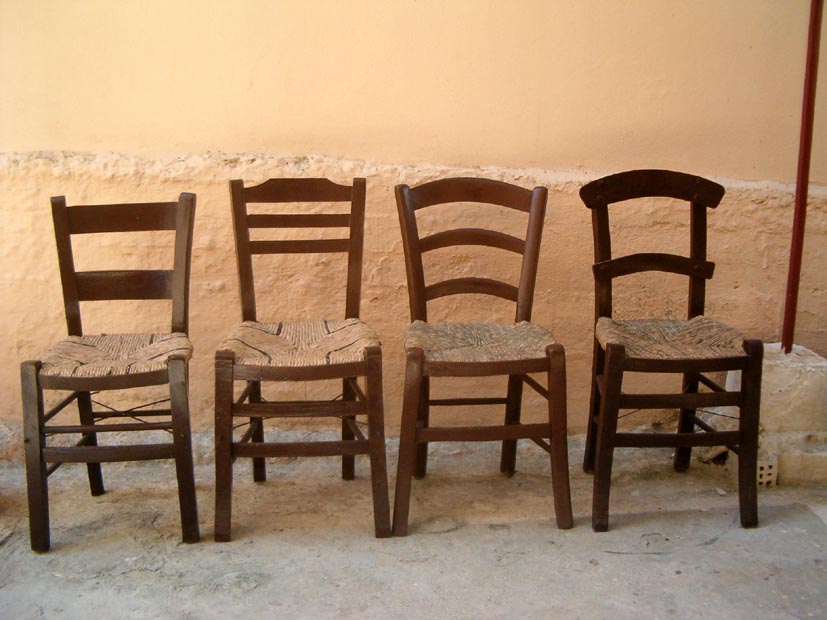 Τα πιο παλιά χρονιά οι καρέκλες ήταν κατασκευασμένες από ψαθί και ξύλο. Τότε, μιλούσαμε για την ψάθινη καρέκλα του σπιτιού, του καφενείου, του υπαίθριου σινεμά….  Οι καρέκλες ήταν κατασκευασμένες, στο σκελετό τους από ξύλο σκληρό, συνήθως από μουριά, από οξιά ή πλάτανο. Το σχήμα της καρέκλας ήταν τέτοιο, ώστε να στηρίζει το σώμα  μας και να παίρνει τη σωστή θέση του σκελετού (θέση ορθής γωνίας)  όταν καθόμαστε, ώστε  να μην κουράζεται το σώμα, έτσι ώστε να αποφεύγονται τα  προβλήματα υγείας, που δημιουργούνται από την κακή στάση του σώματος.