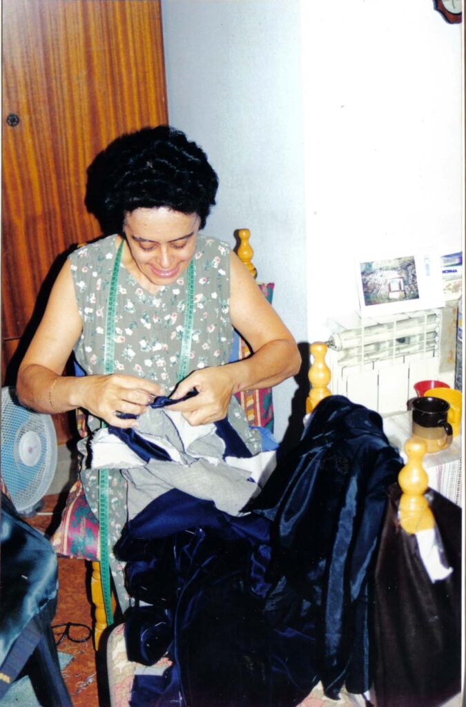 Εκεί στα Σαρλάτα είχε κάνει το πατρικό της σπίτι εργαστήρι και πόστο συνάντησης φίλων και δικών της. Έφτιαχνε παραδοσιακές φορεσιές, στολές καρναβαλικές, κούκλες εμπορίου με παραδοσιακές στολές, ρούχα για πολιτιστικούς συλλόγους, που με τη σειρά τους κάποιοι σύλλογοι αναγνώρισαν το έργο της και την τίμησαν. Πήρε χαρά και παράταση χρόνων. Συνεργαστήκαμε για το απλό, το δικό μας φκιασίδι της κεφαλονίτικης φορεσιάς.