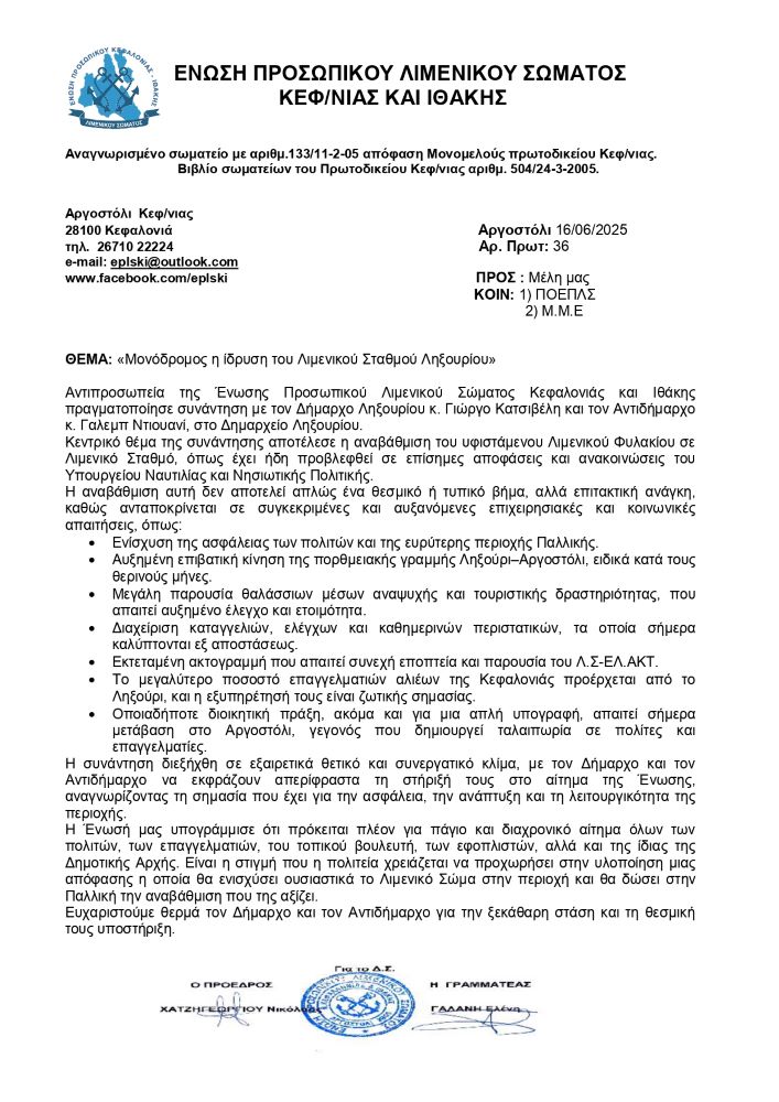 ΕΠΛΣΚΙ: Μονόδρομος η ίδρυση Λιμενικού Σταθμού στο Ληξούρι