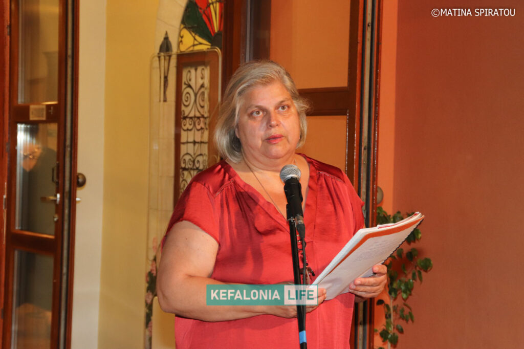 Την εκδήλωση άνοιξε και παρουσίασε η Μαρία Καμινάρη, Πρόεδρος των Φίλων της Ιακωβατείου Βιβλιοθήκης, ενώ σύντομο ετήσιο απολογισμό της δράσης της Βιβλιοθήκης εκφώνησε η Βάσω Μαθιουδάκη, Διευθύντρια της Ιακωβατείου. Σύντομο χαιρετισμό είχε και ο Αντιπεριφερειάρχης Κεφαλονιάς – Ιθάκης Σωτήρης Κουρής.