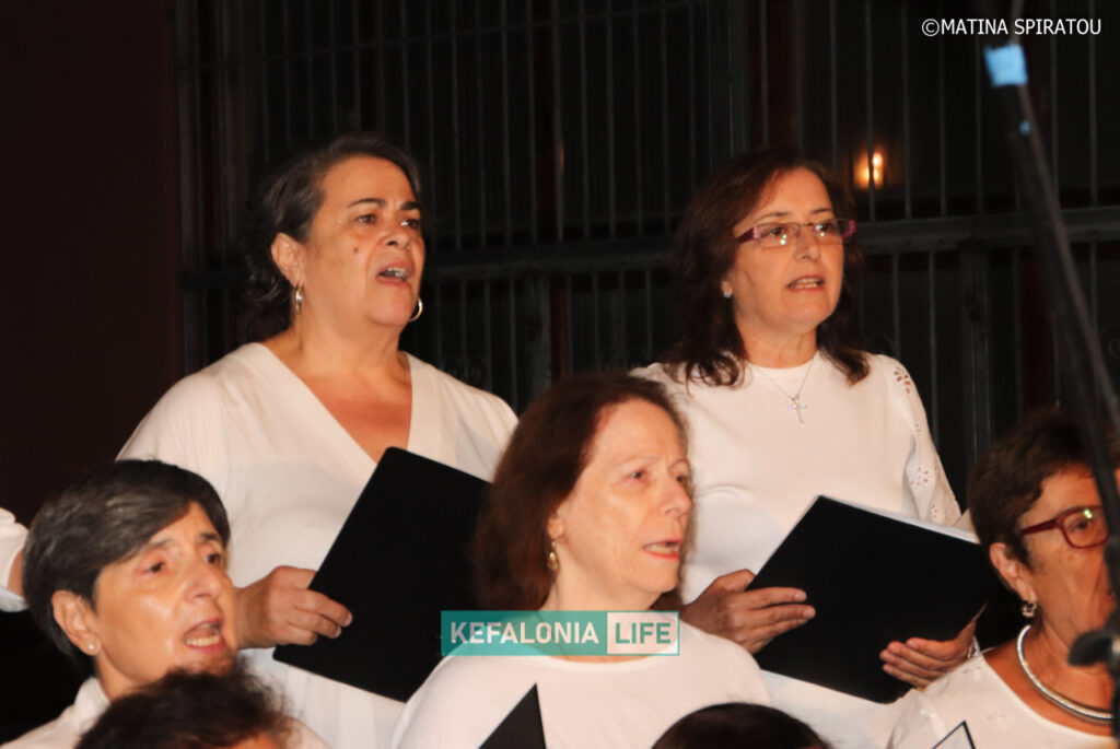 Η βραδιά έκλεισε με χορωδιακά ελληνικά τραγούδια από τη Γυναικεία Χορωδία του Συλλόγου «Χορωδία και Μαντολινάτα Αργοστολίου» με μαέστρο την Αλεξία Μαρτσέλου και στο πιάνο την Ευαγγελία Φραγκιά διασκεδάζοντας το κοινό. Σύντομη αναφορά στο Σύλλογο έκανε ο Πρόεδρός του Ρωσσέτος Λούζης, ο οποίος παρουσίασε και τα κομμάτια.