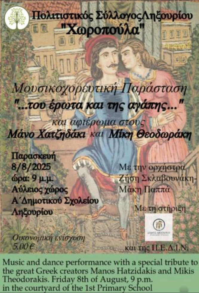 Στις 08/08 στις 21:00 η μουσικοχορευτική παράσταση “του έρωτα και της αγάπης” από τη Χωροπούλα στο Ληξούρι
