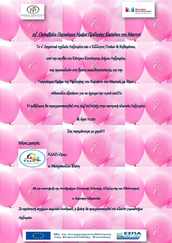 Στις 24/10 στο Ληξούρι Δράση Ευαισθητοποίησης για τον Καρκίνο του Μαστού